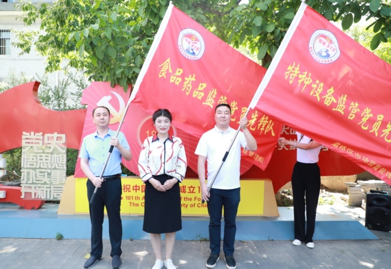 为庆祝建党101周年,喜迎党的二十大胜利召开,灞桥区市场监督管理局党委组织部分党员赴灞源革命纪念馆,在这特别的时间,特别的地点,开展以“喜迎二十大、奋进新征程、党员当先锋”为主题的党建活动,并现场组建成立“食品药品监管党员先锋队”“特种设备监管党员先锋队”两个党员先锋队,举行授旗仪式。