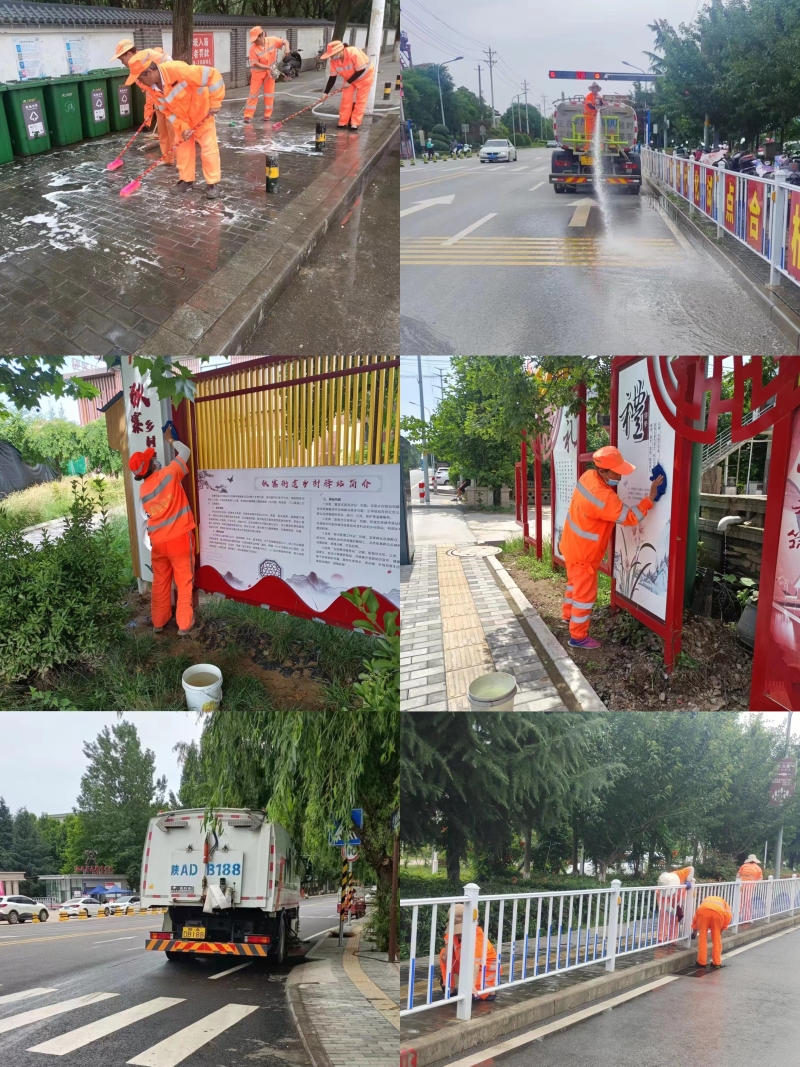 组织114名保洁员,对水安路、环镇北路、东月路及白鹿仓周边进行全面清洁。保洁人员对沿路宣传栏、公交站牌、垃圾箱等基础设施进行擦洗,对绿化带、道路死角垃圾进行清扫。街道商户主动参与,清理商铺门口堆放的垃圾、杂物。累计擦洗门店94家,清扫道路12.7公里,清运垃圾15车。