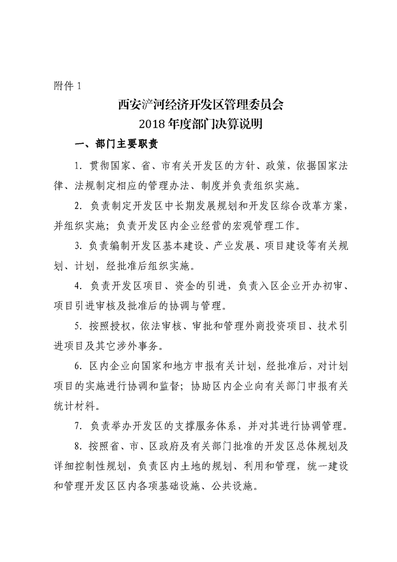 灞桥区浐河经济开发区管理委员会2018年度部门决算说明