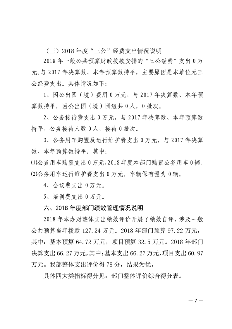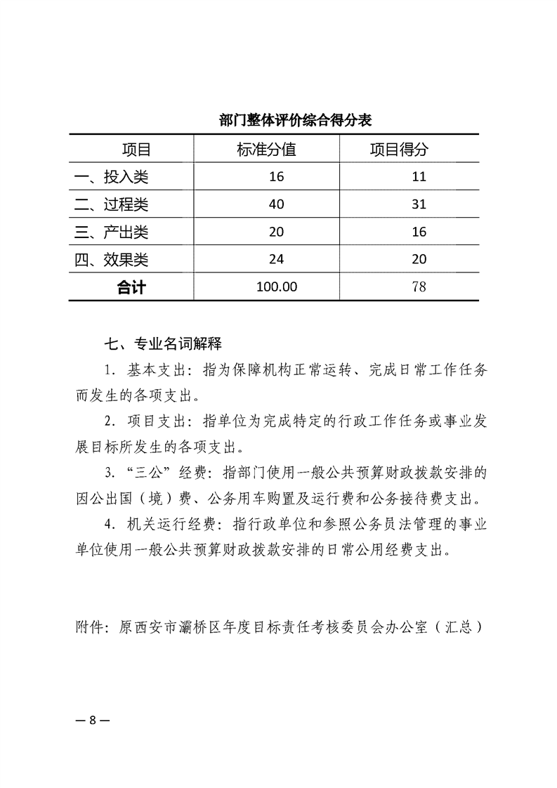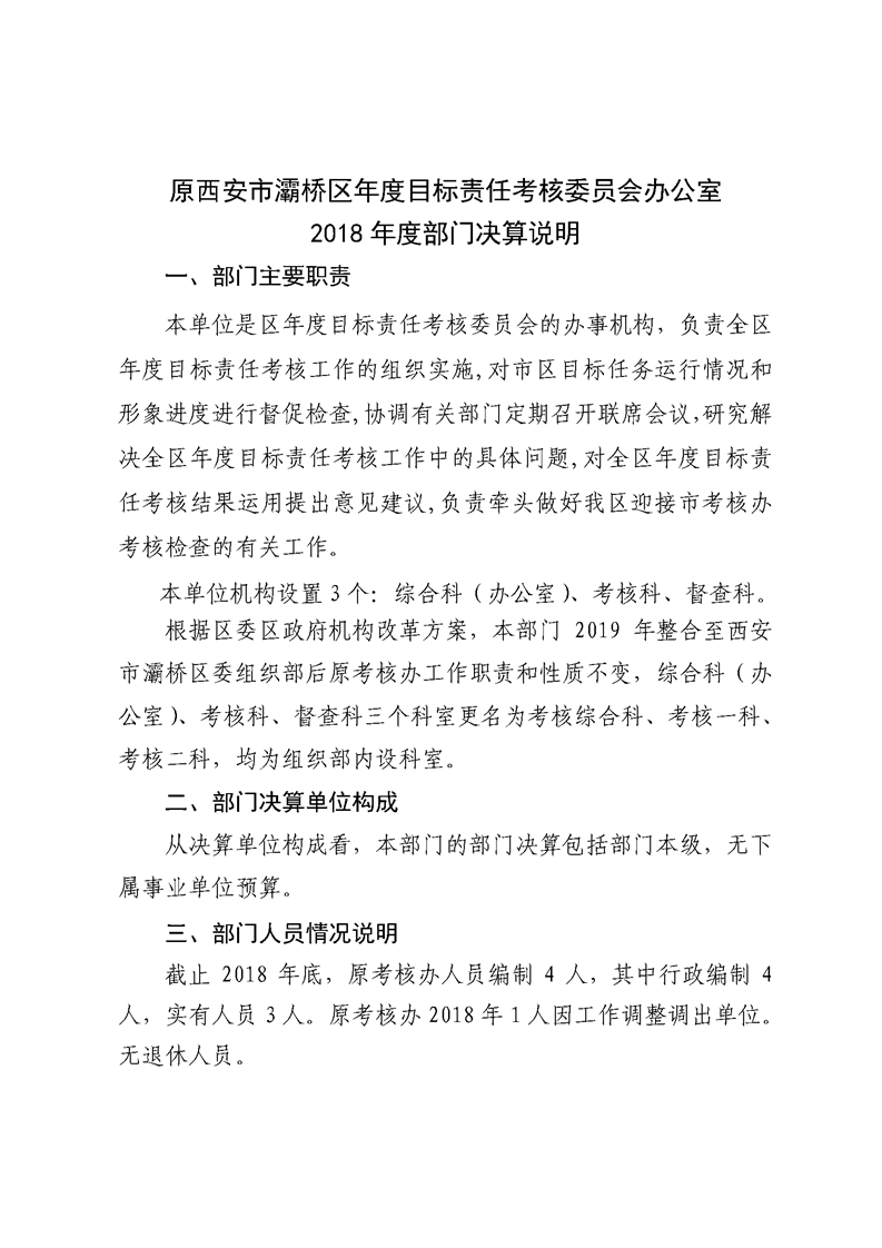 灞桥区年度目标责任考核委员会办公室2018年度部门决算说明