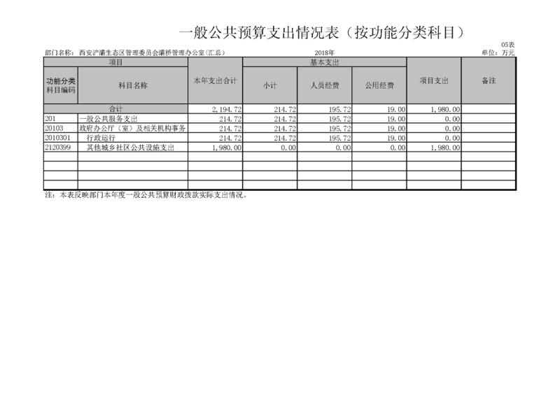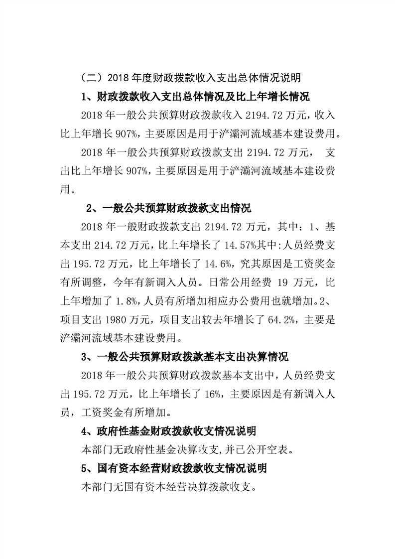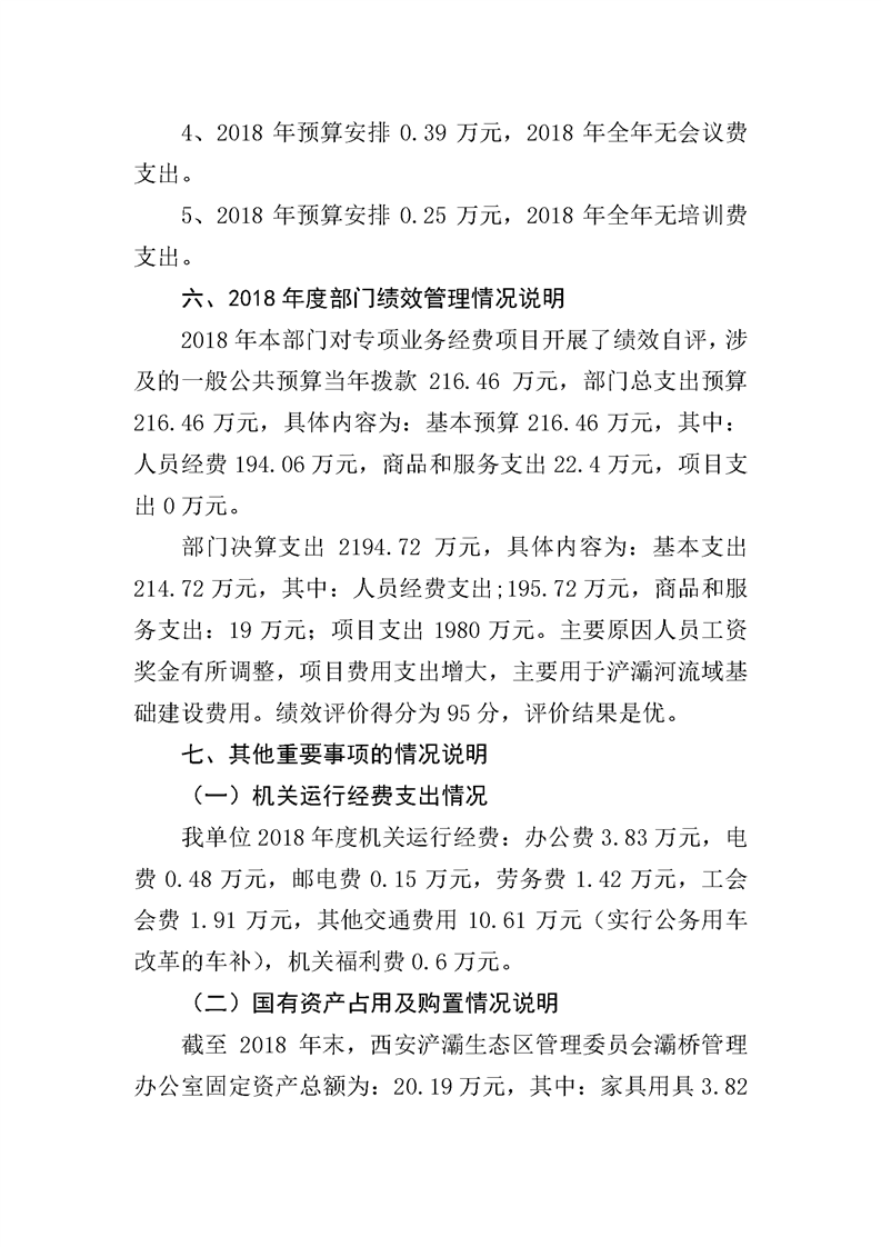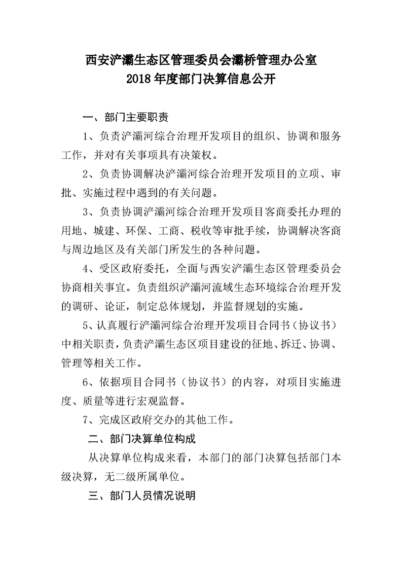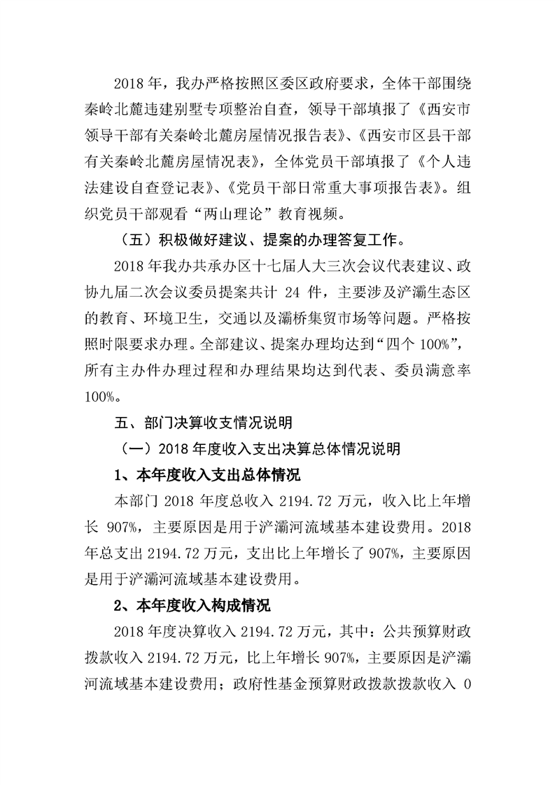 西安浐灞生态区管理委员会灞桥管理办公室2018年度部门决算说明