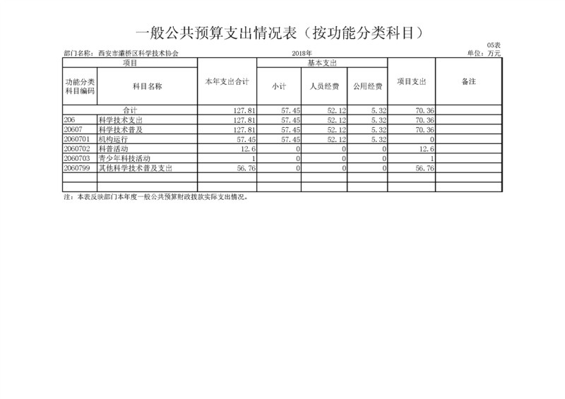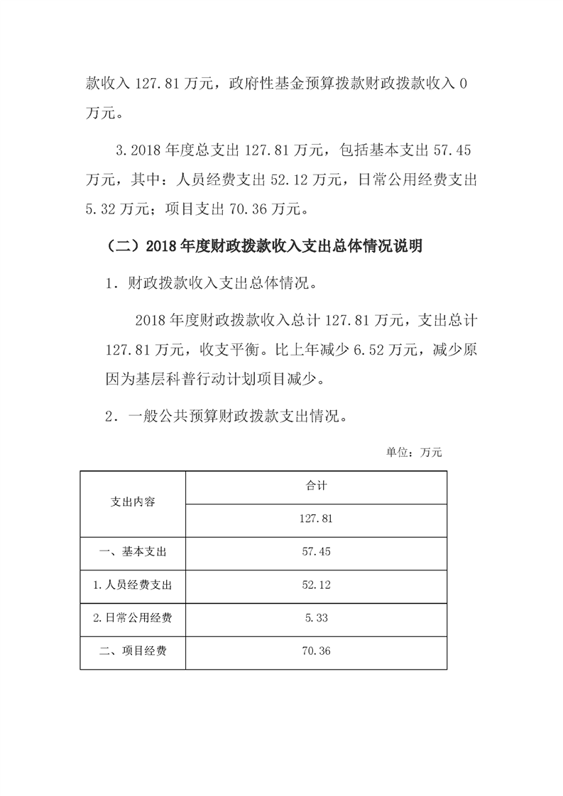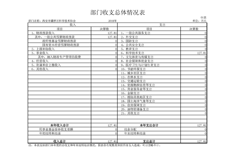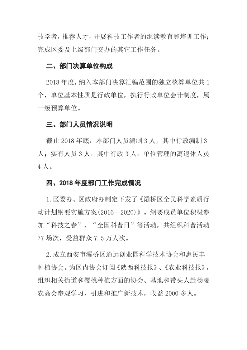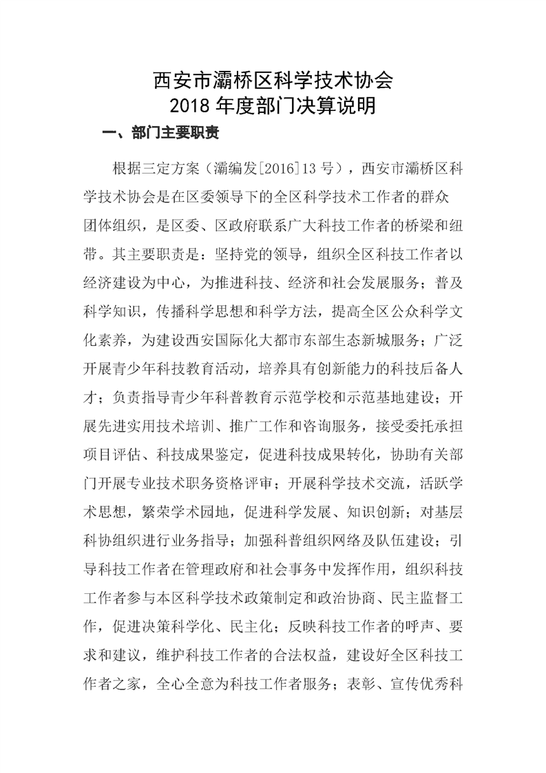 灞桥区科学技术协会2018年度部门决算说明