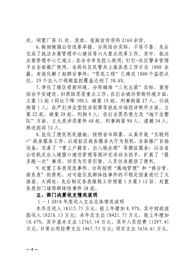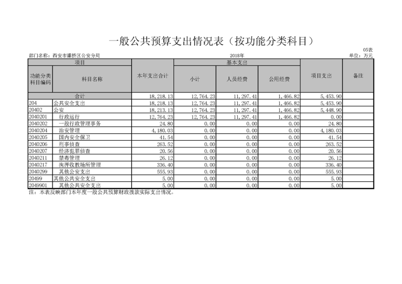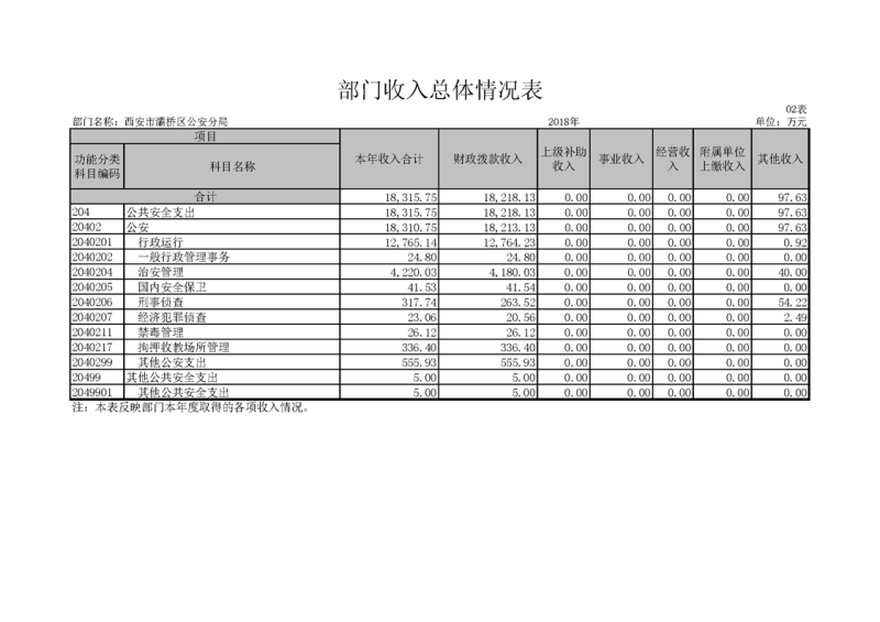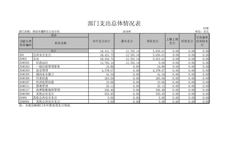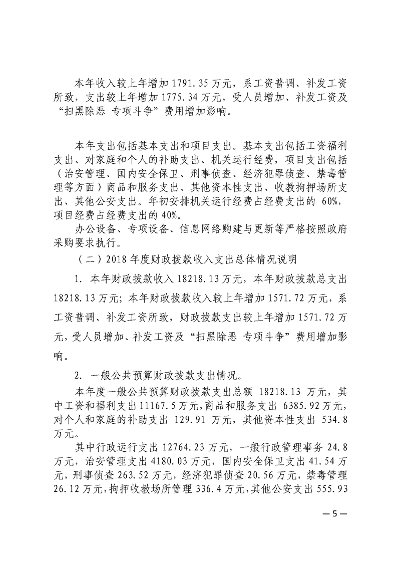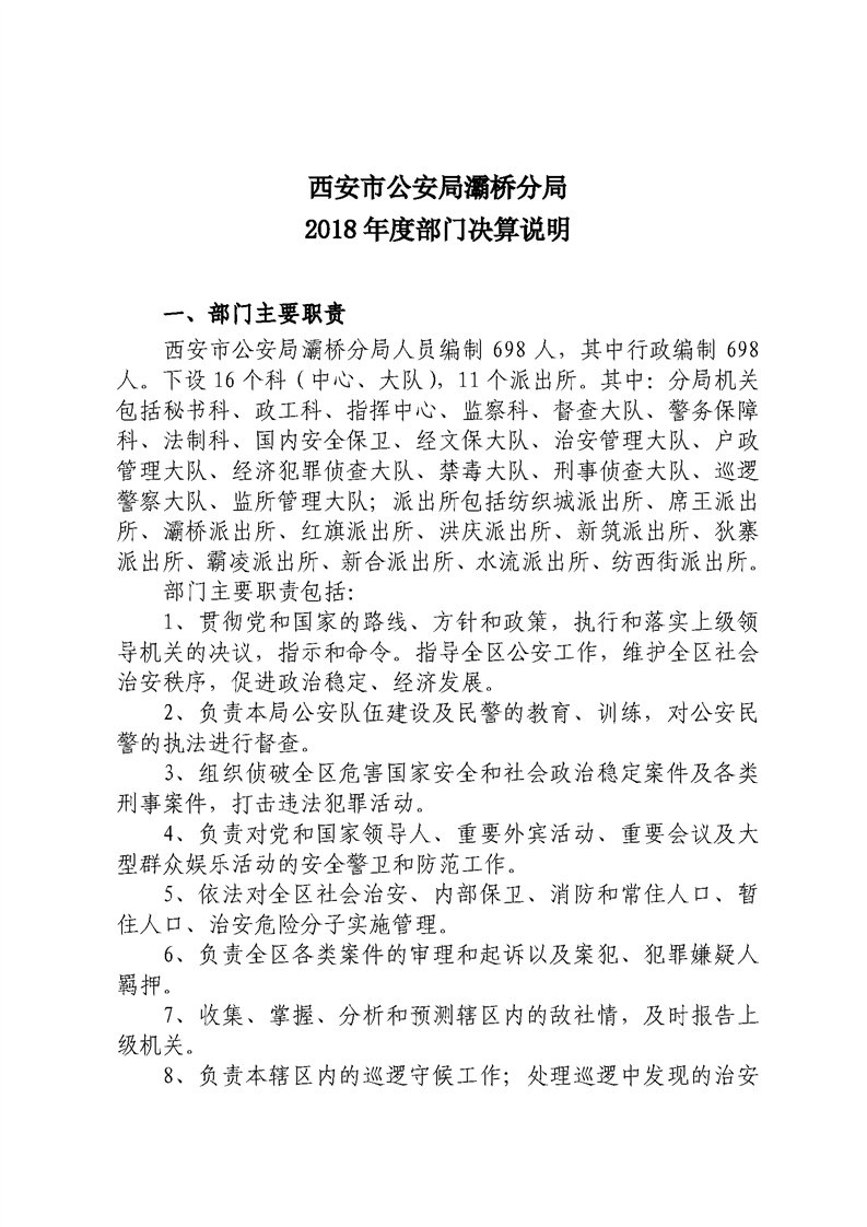 灞桥区公安局灞桥分局2018年度部门决算说明
