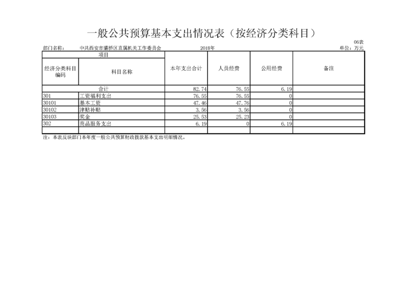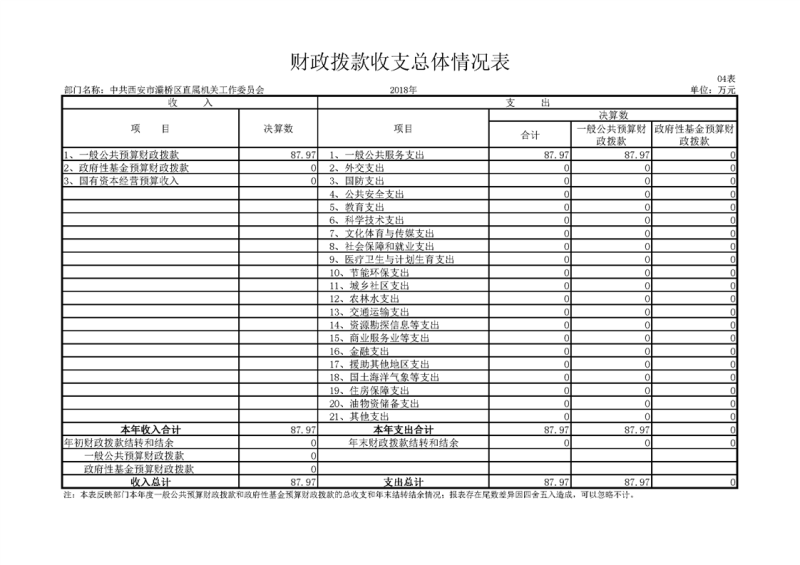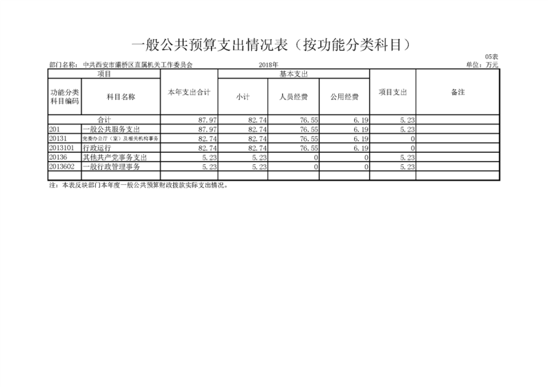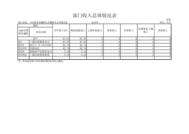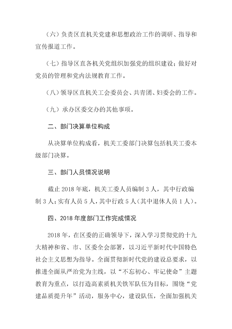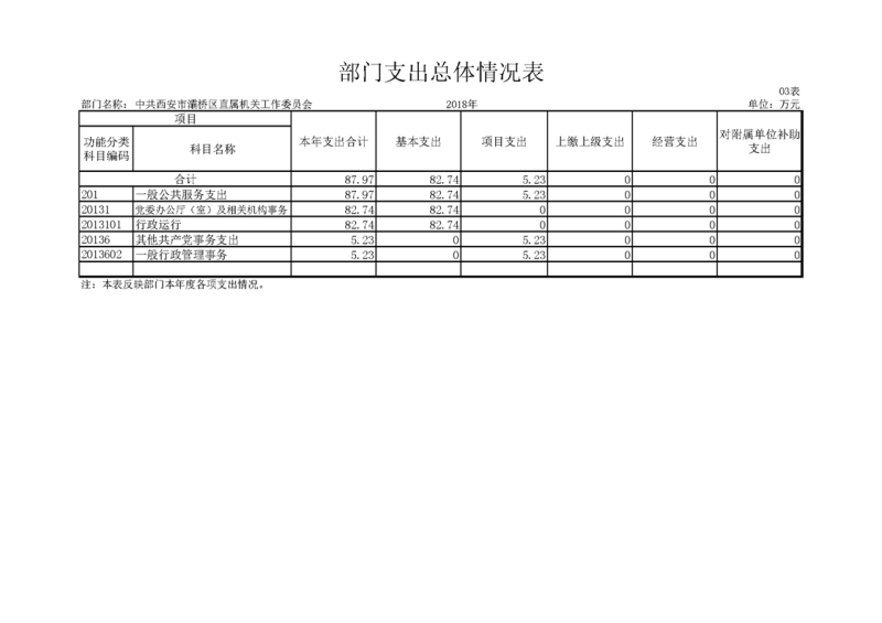 灞桥区直机关工委2018年度决算说明