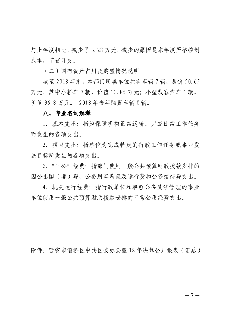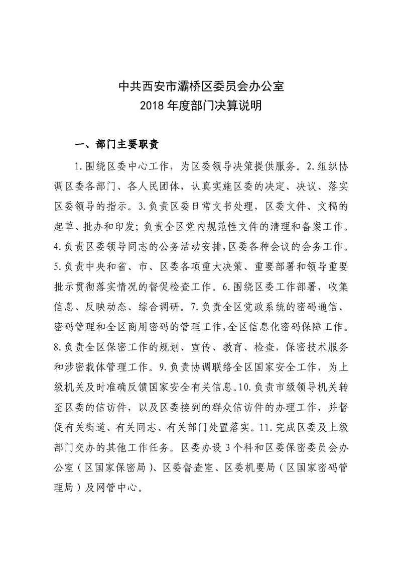 灞桥区委员会办公室2018年度部门决算说明