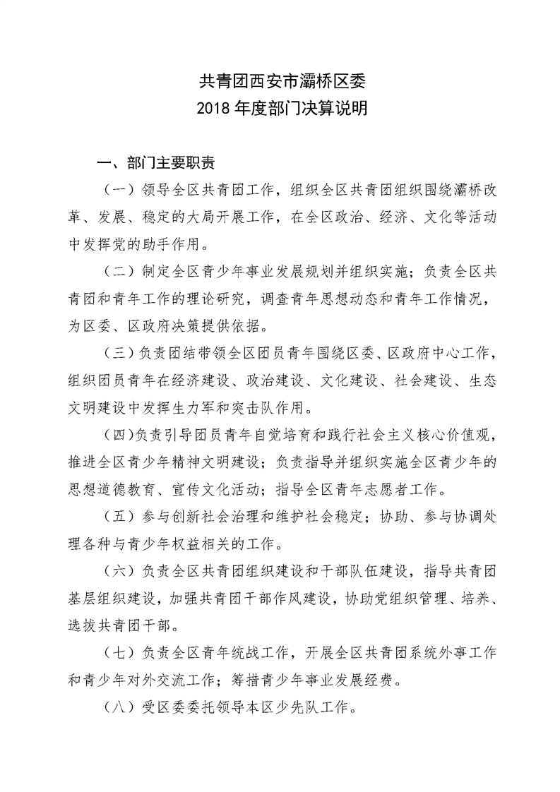 灞桥区委2018年度部门决算说明