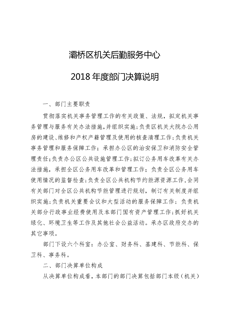 灞桥区机关后勤服务中心2018年度部门决算说明