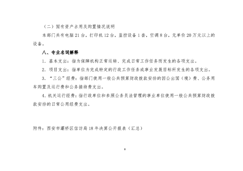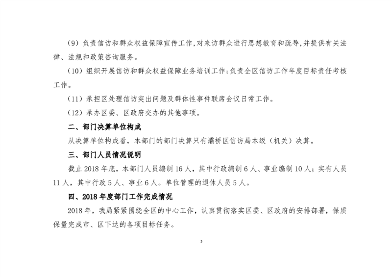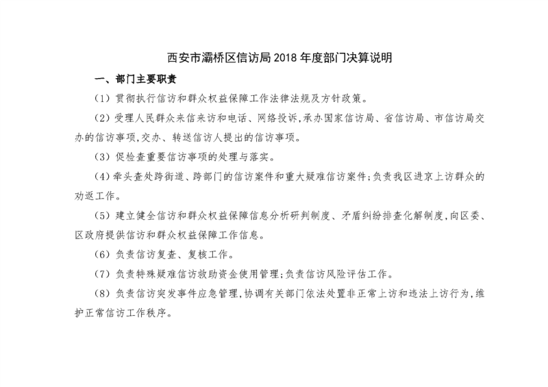 灞桥区信访局2018年度部门决算说明