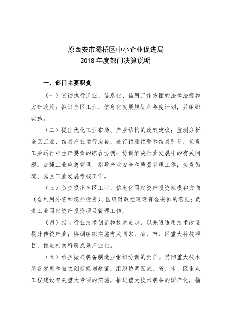 灞桥区中小企业促进局2018年度部门决算说明