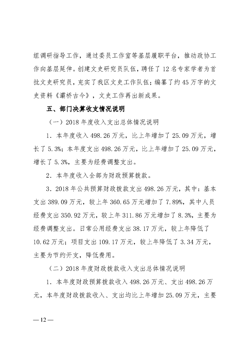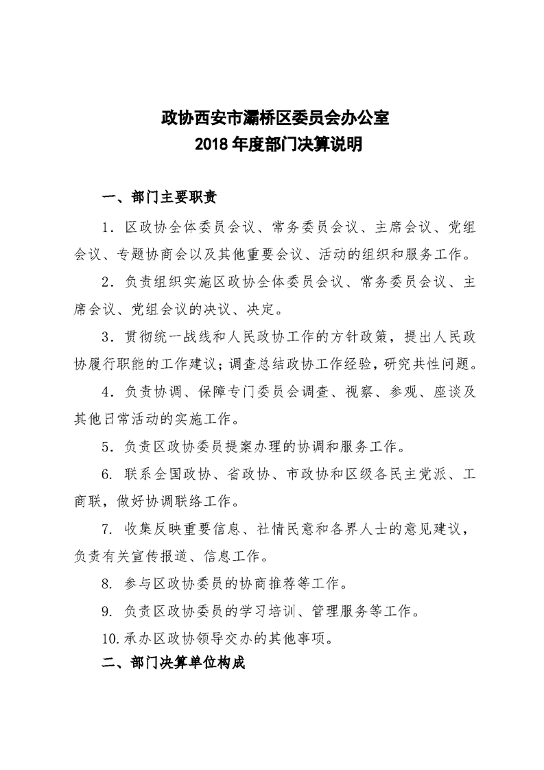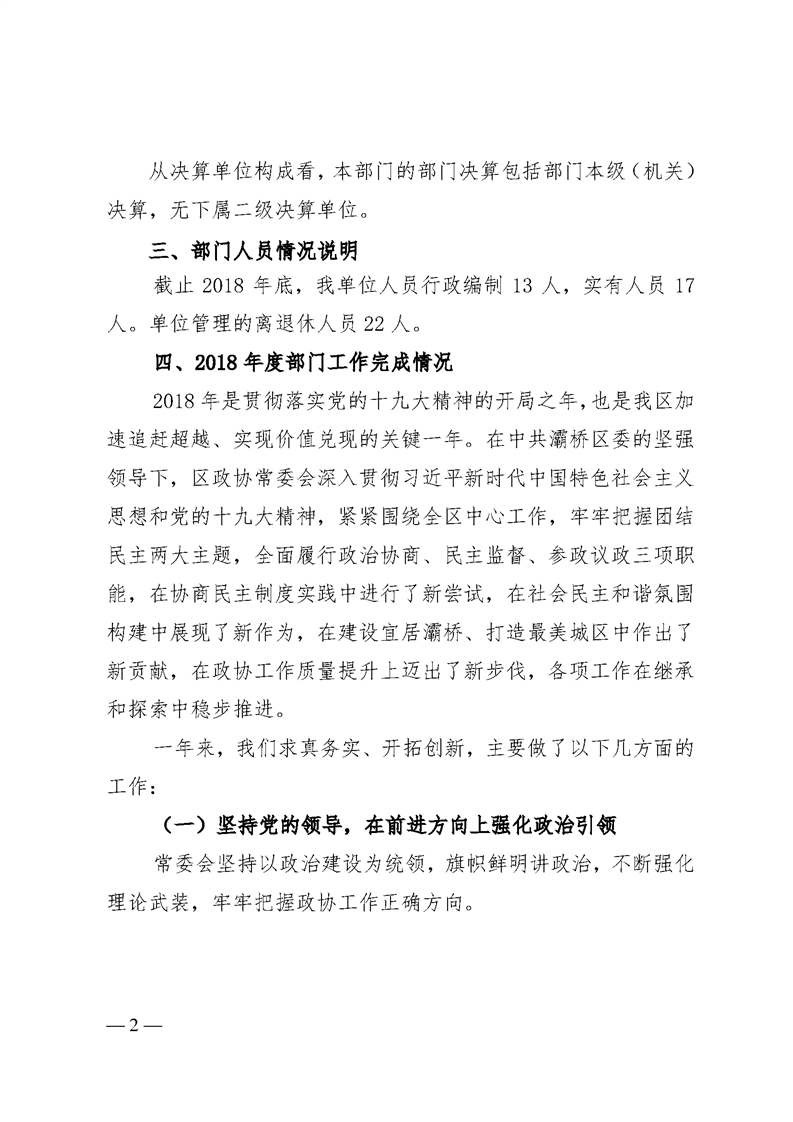 灞桥区委员会办公室2018年度部门决算说明