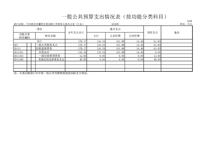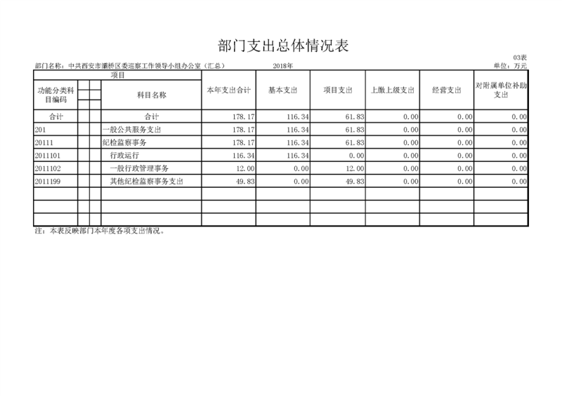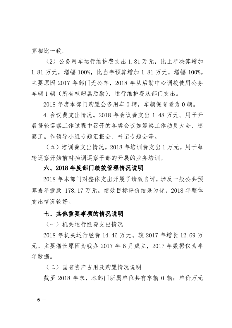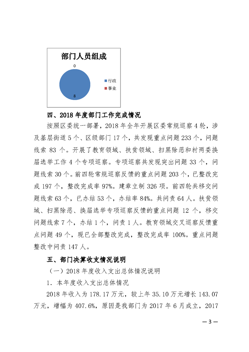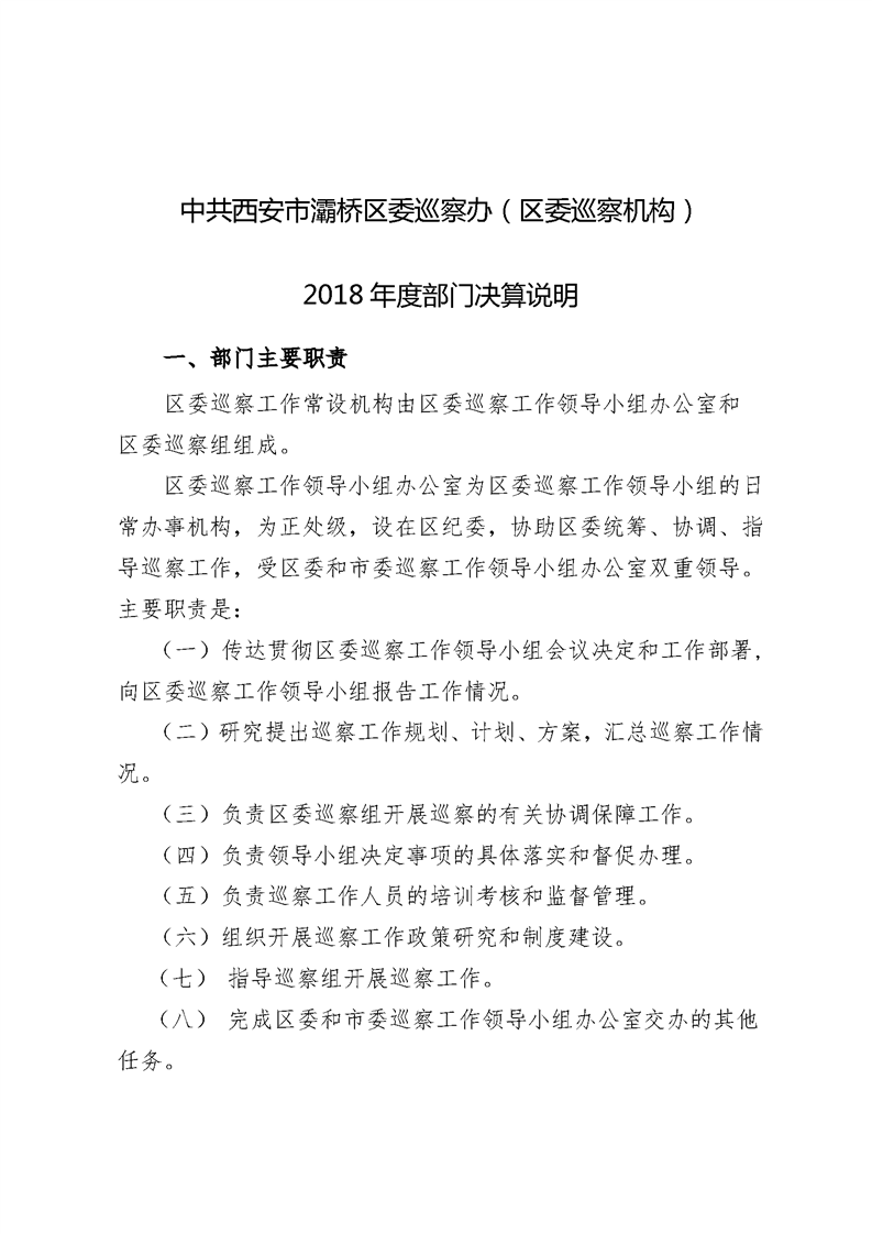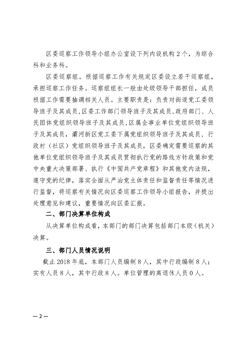 灞桥区委巡察办(区委巡察机构)2018年度部门决算说明