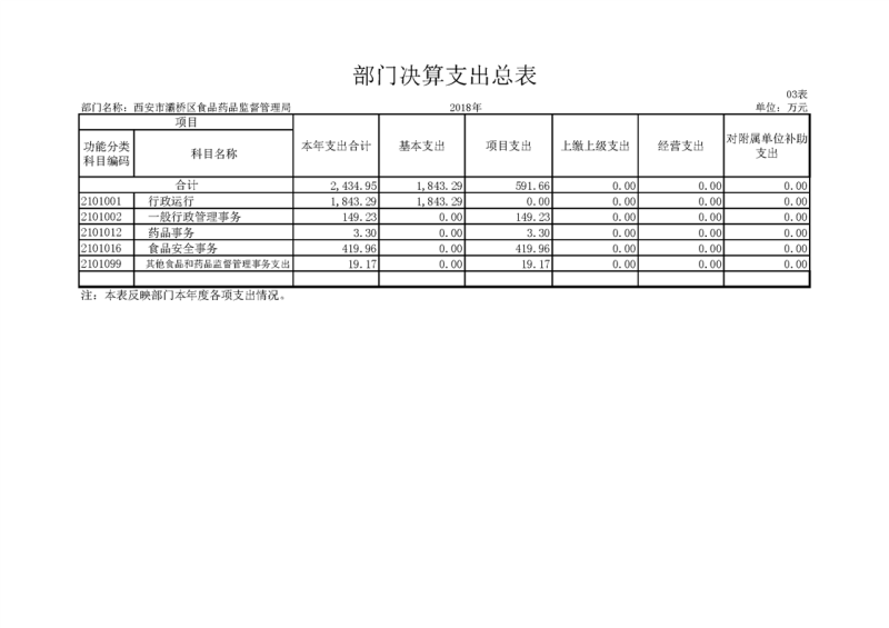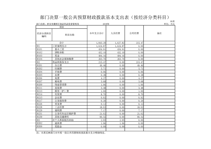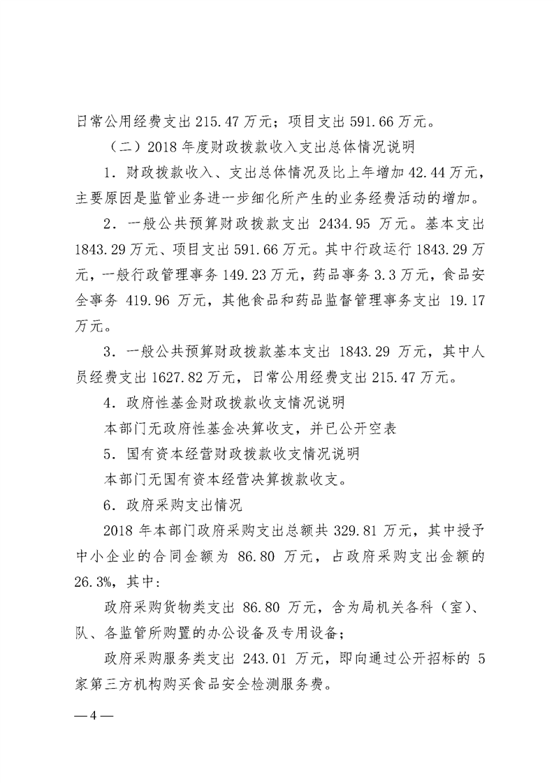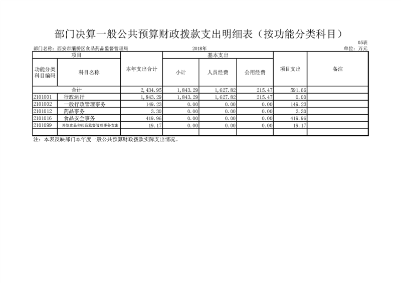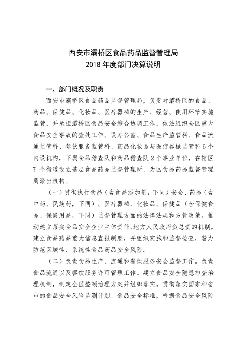 灞桥区食品药品监督管理局2018年度部门决算说明