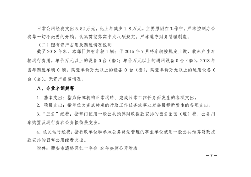 灞桥区红十字会2018年度部门决算说明