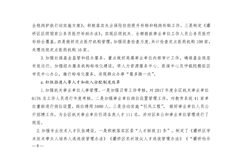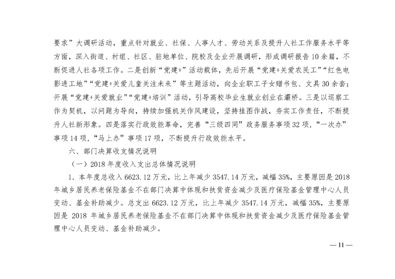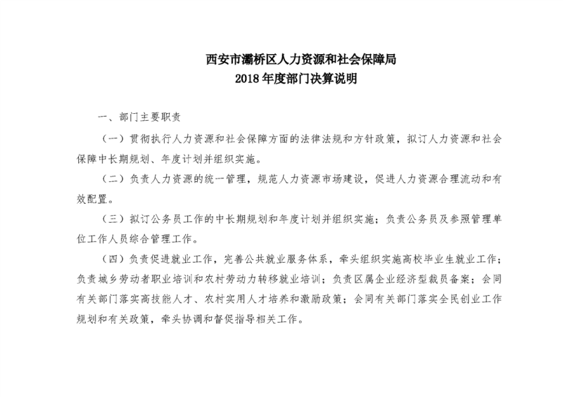 灞桥区人力资源和社会保障局2018年度部门决算说明
