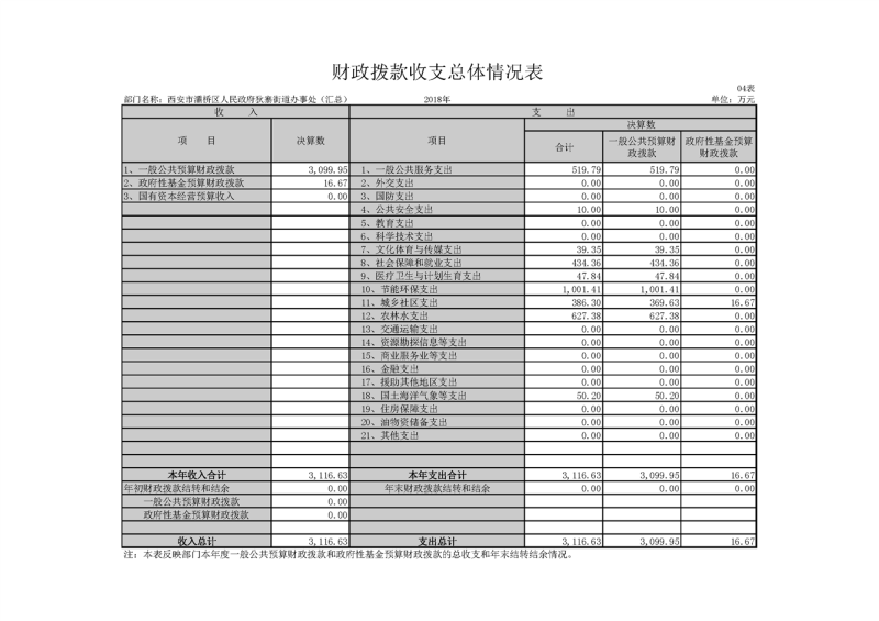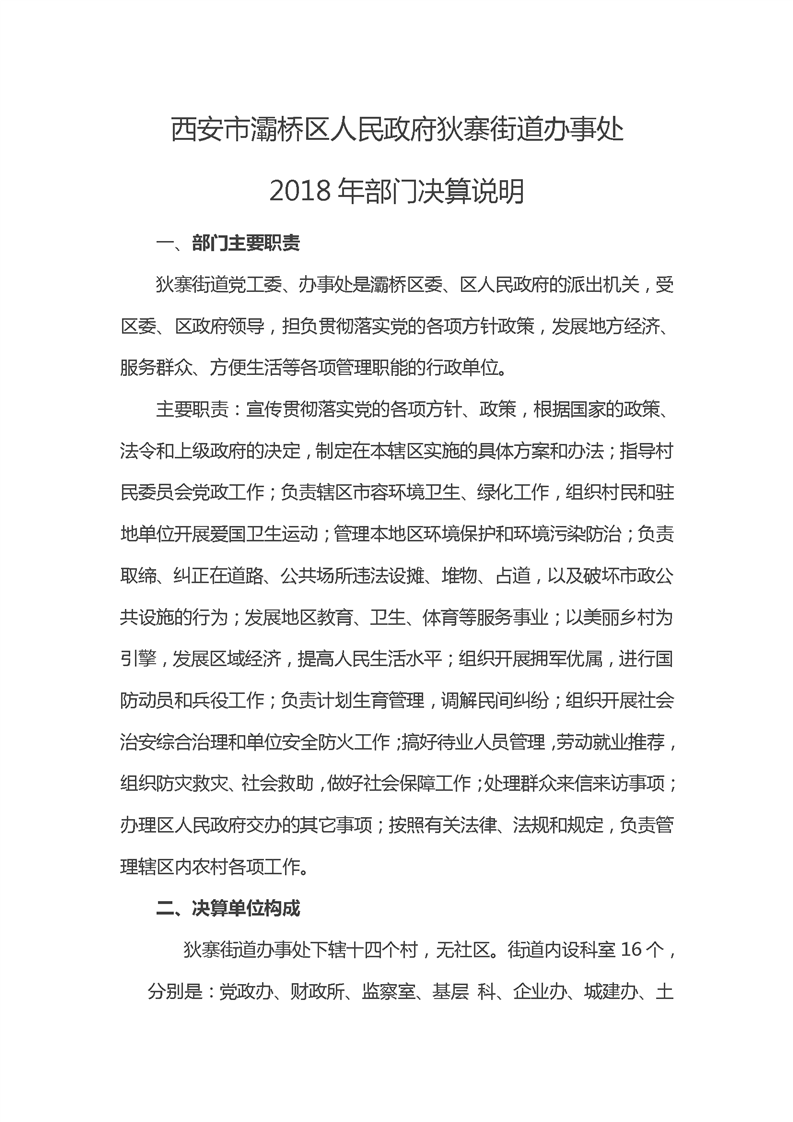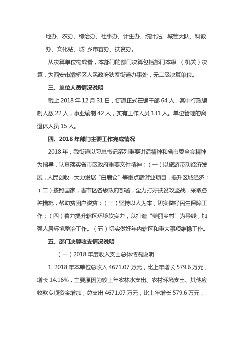 灞桥区人民政府狄寨街道办事处2018年度部门决算说明