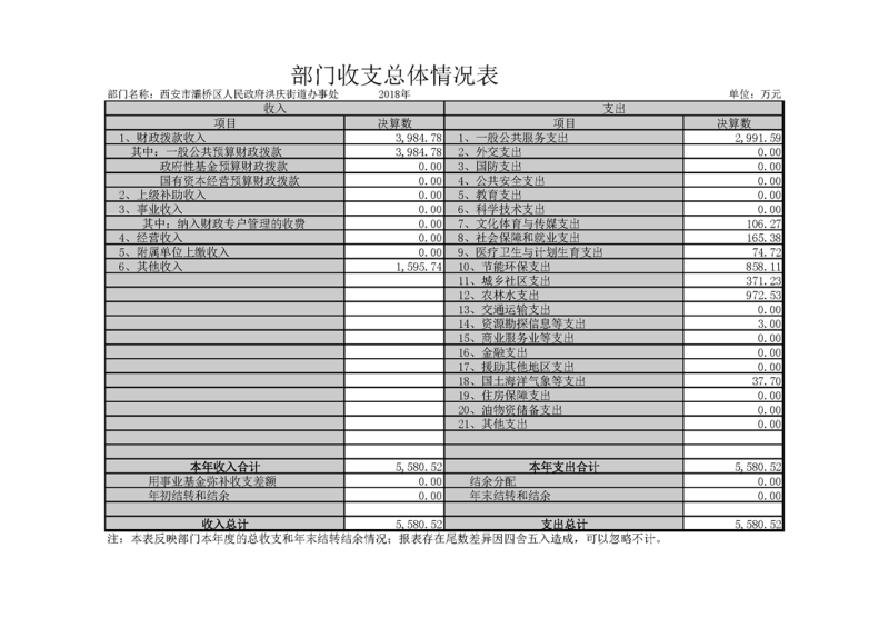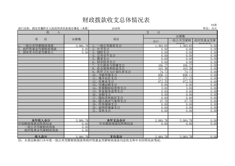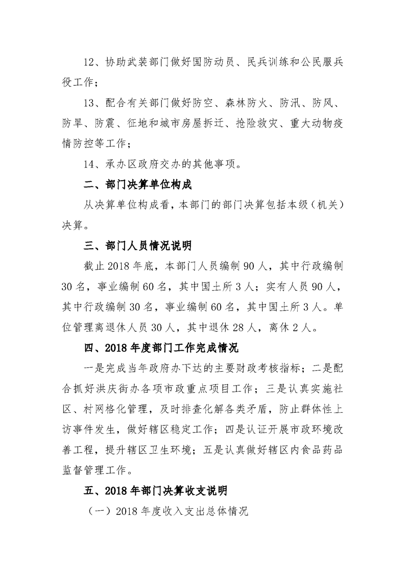 灞桥区洪庆街道办事处2018年度部门决算说明