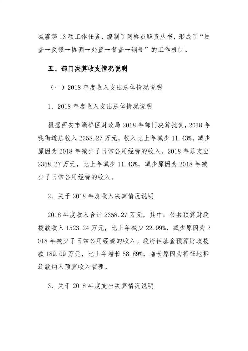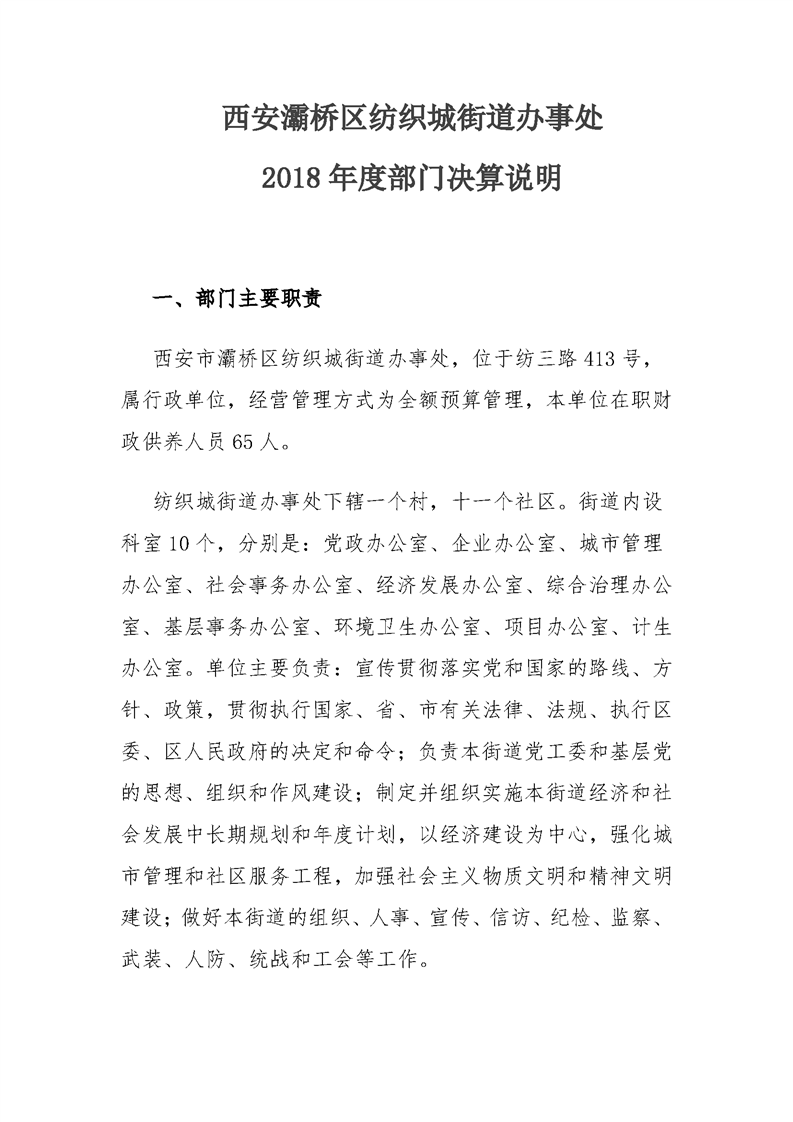 灞桥区纺织城街道办事处2018年度部门决算说明