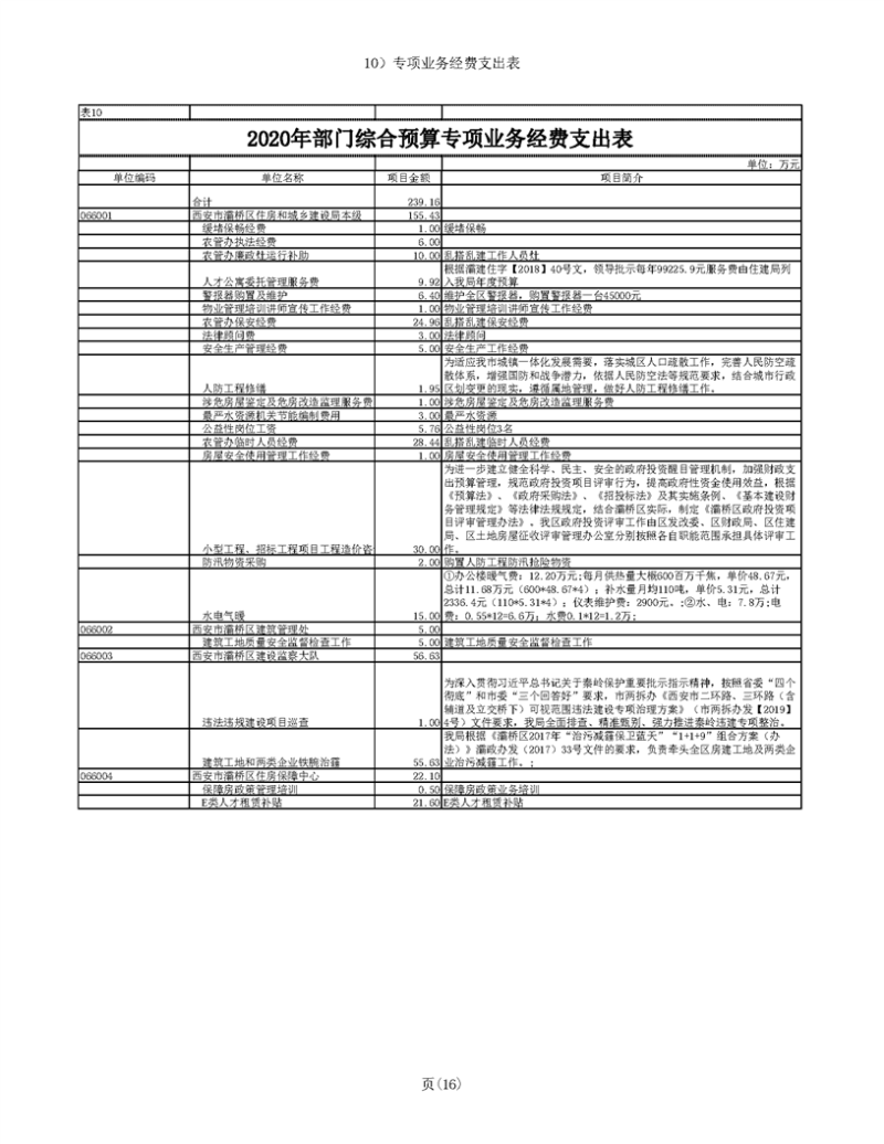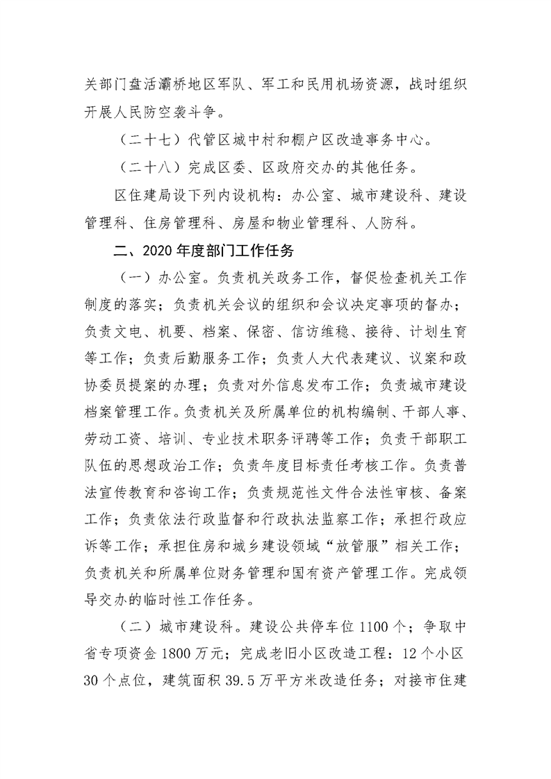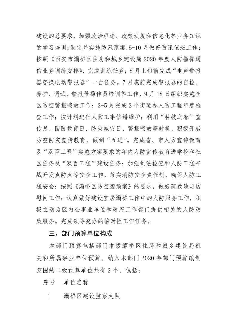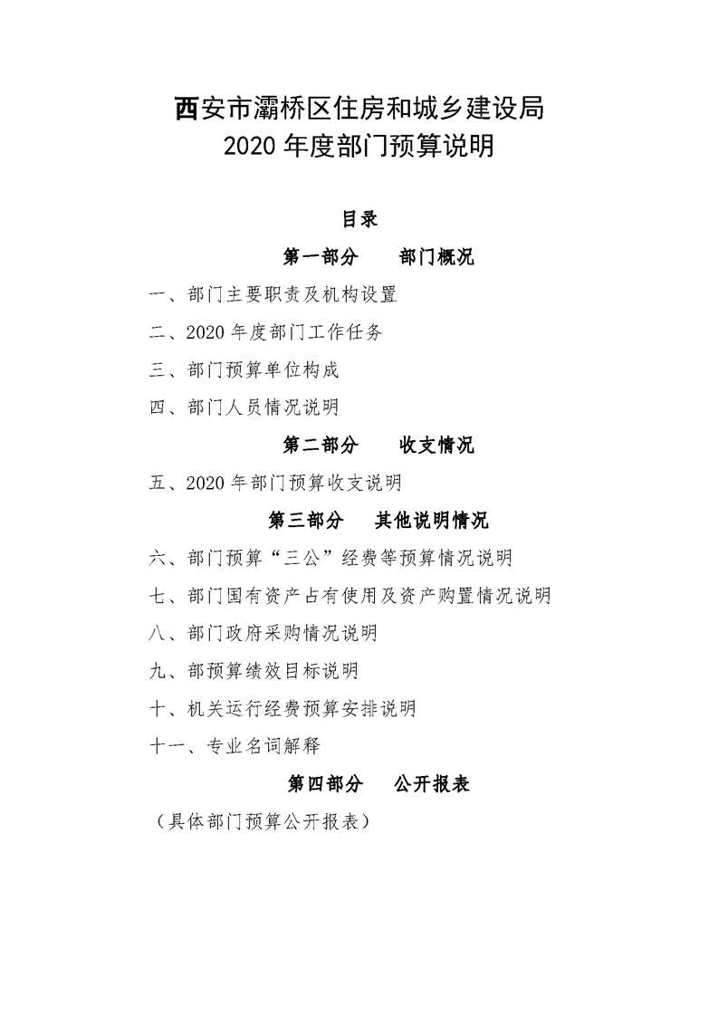 灞桥区住房和城乡建设局2020年部门综合预算说明