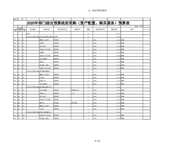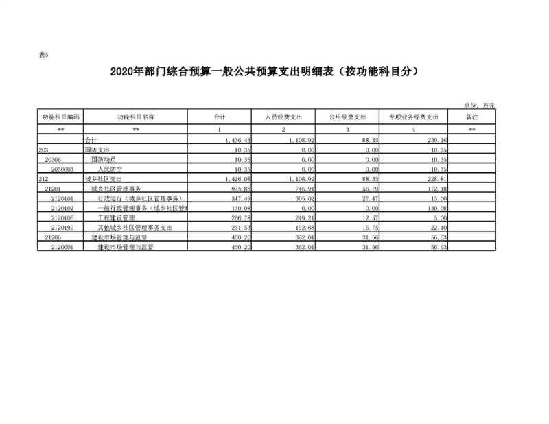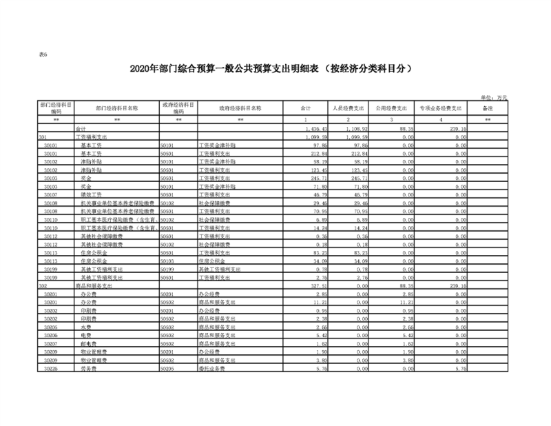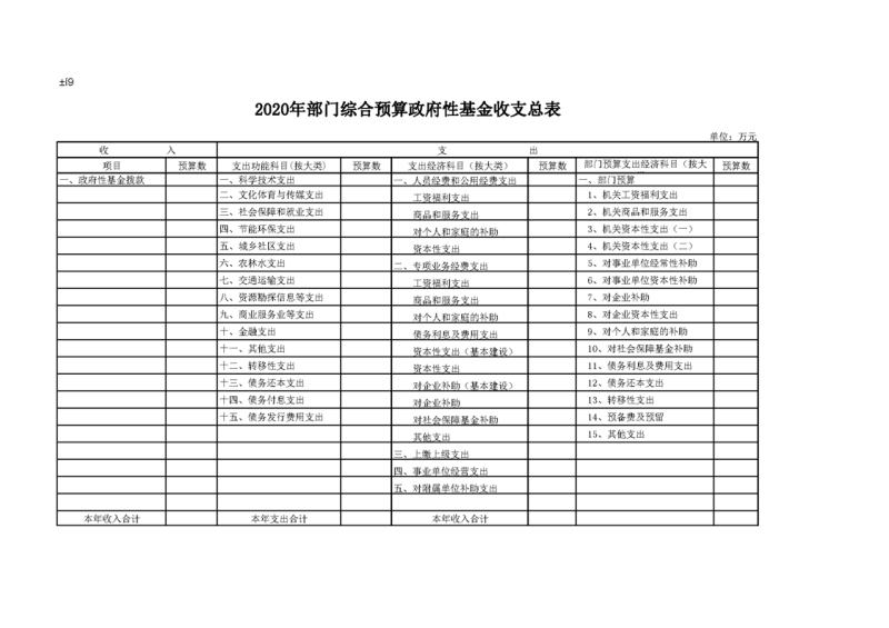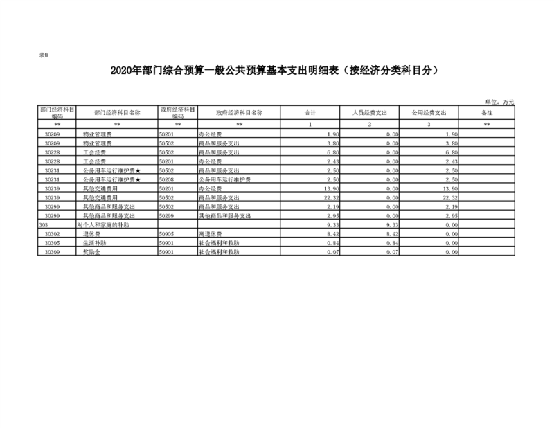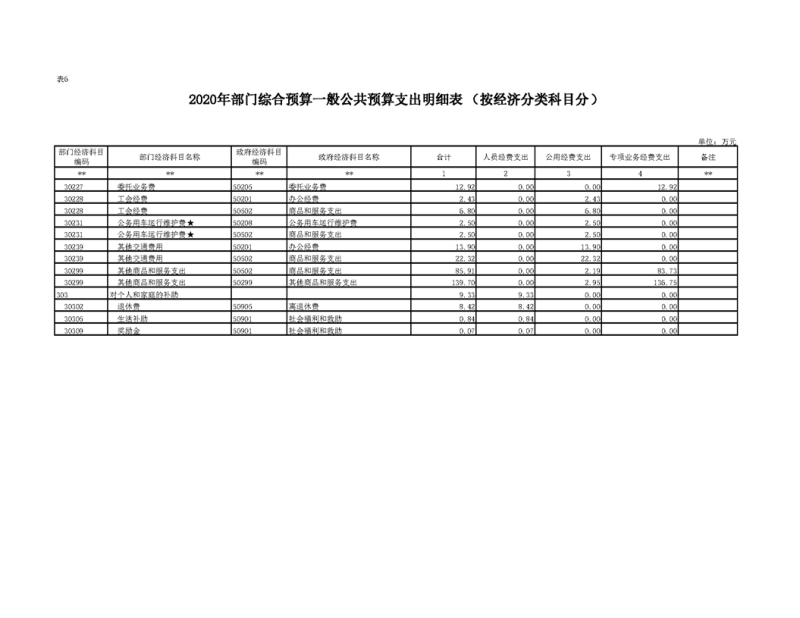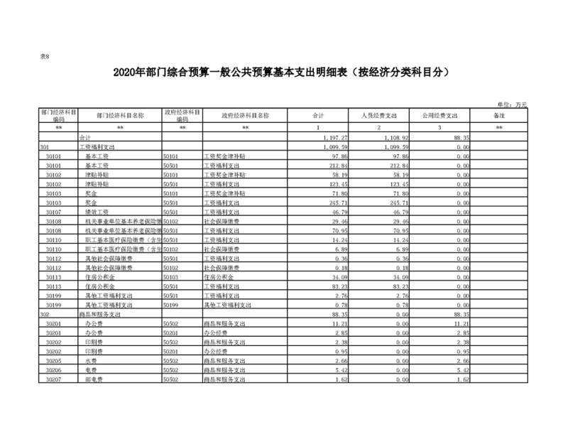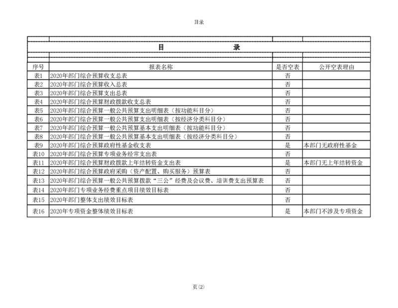 2020年部门预算公开目录