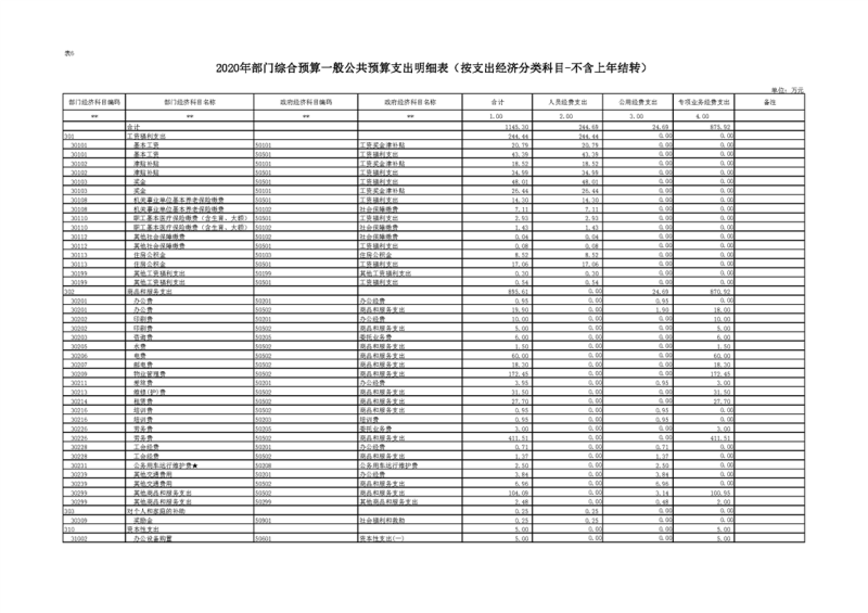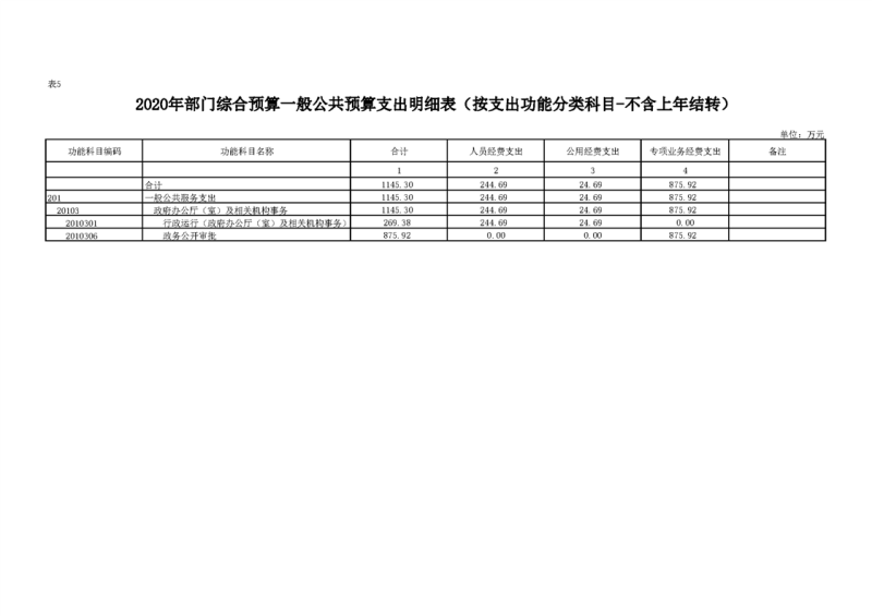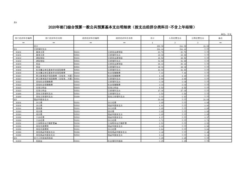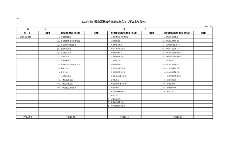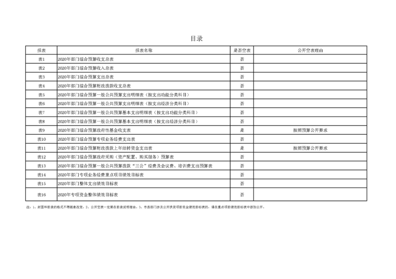 2020年部门预算公开目录