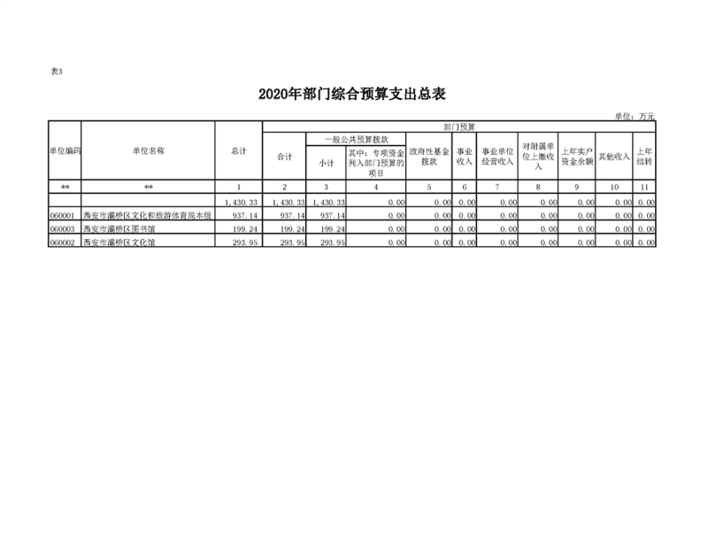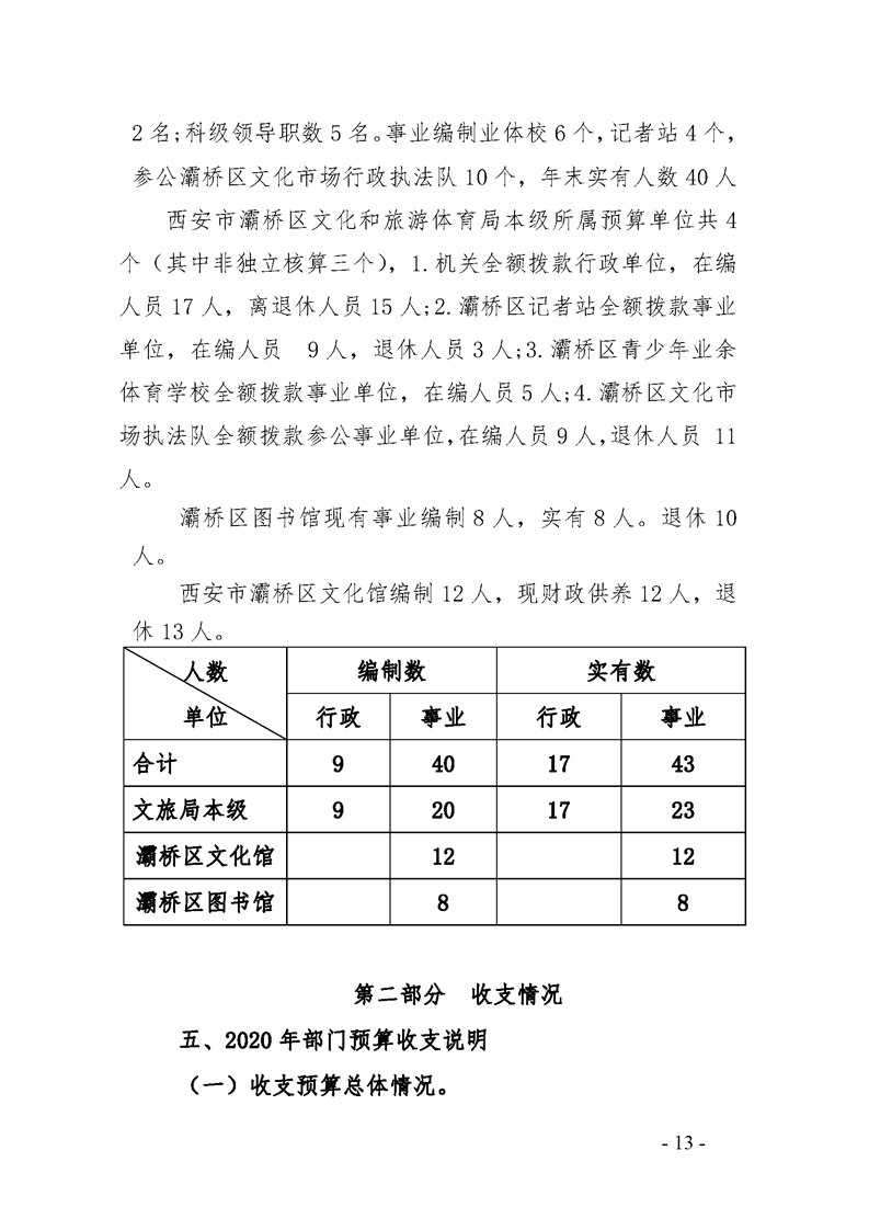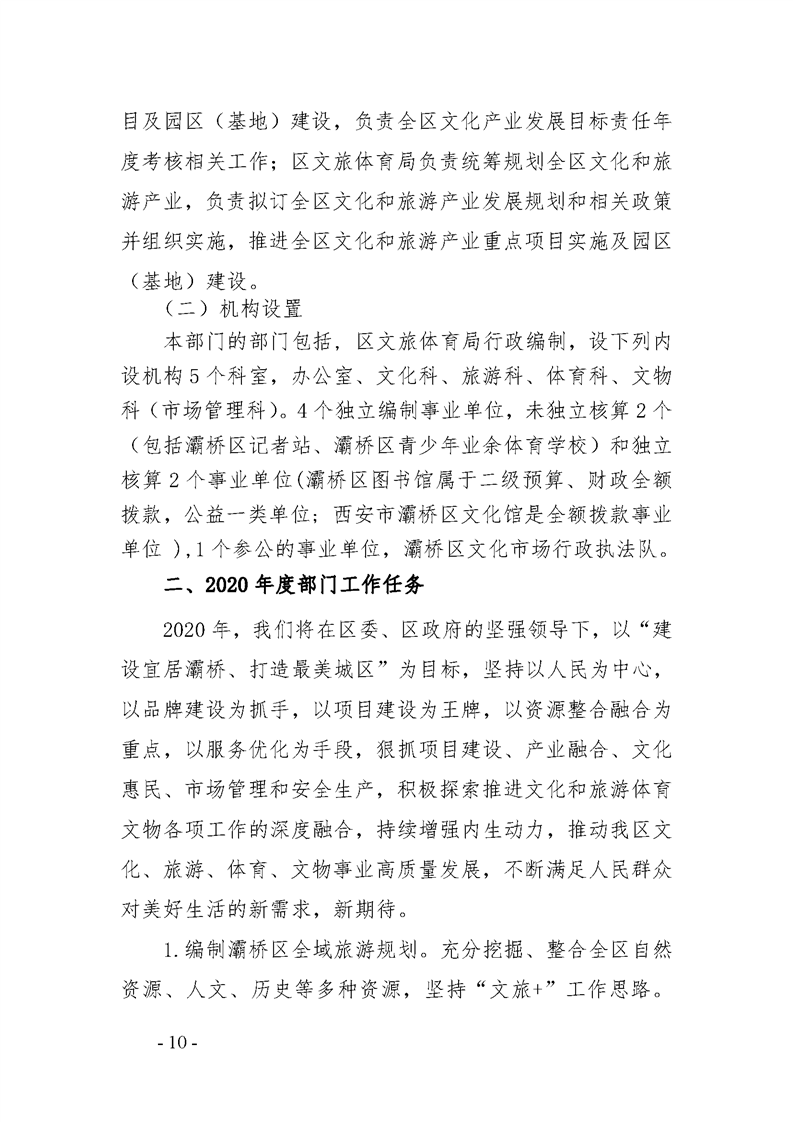 灞桥区文化和旅游体育局2020年部门综合预算说明