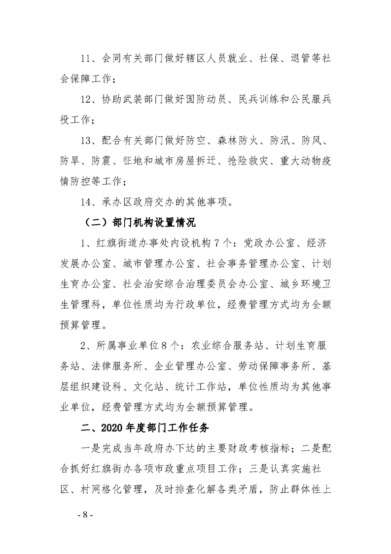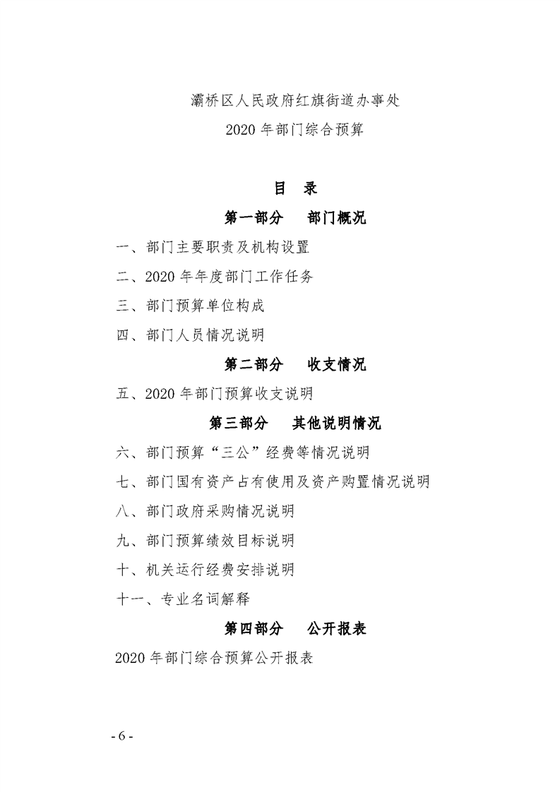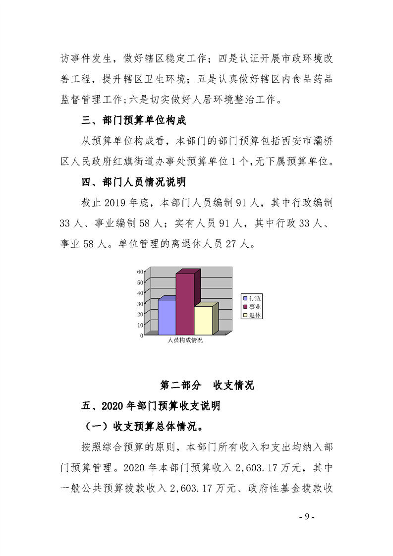 灞桥区红旗街道办事处2020年部门综合预算说明