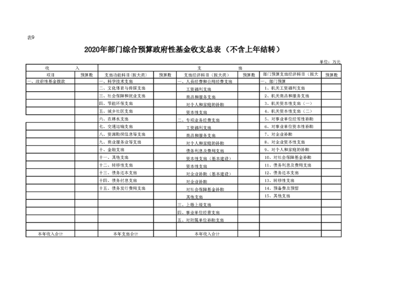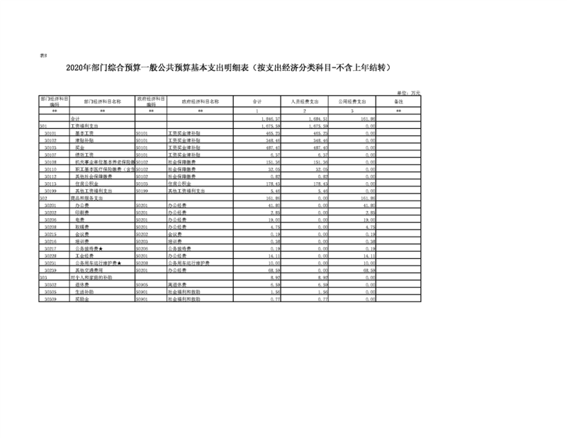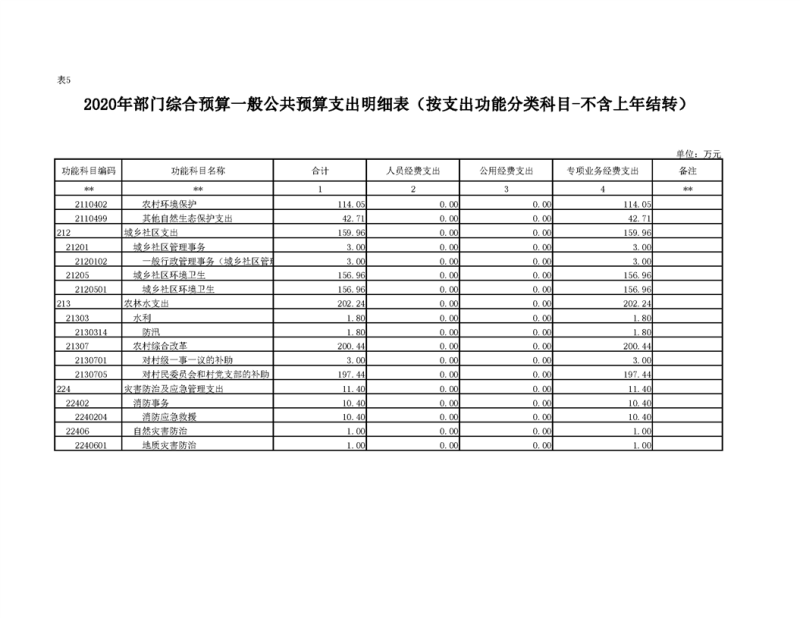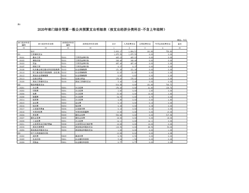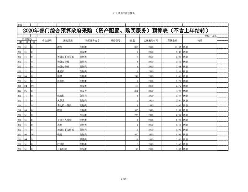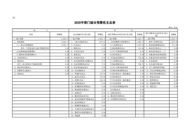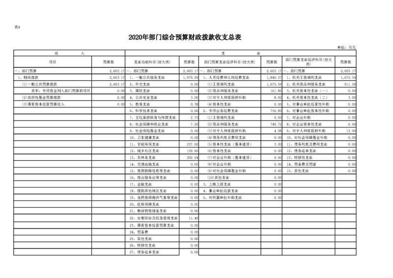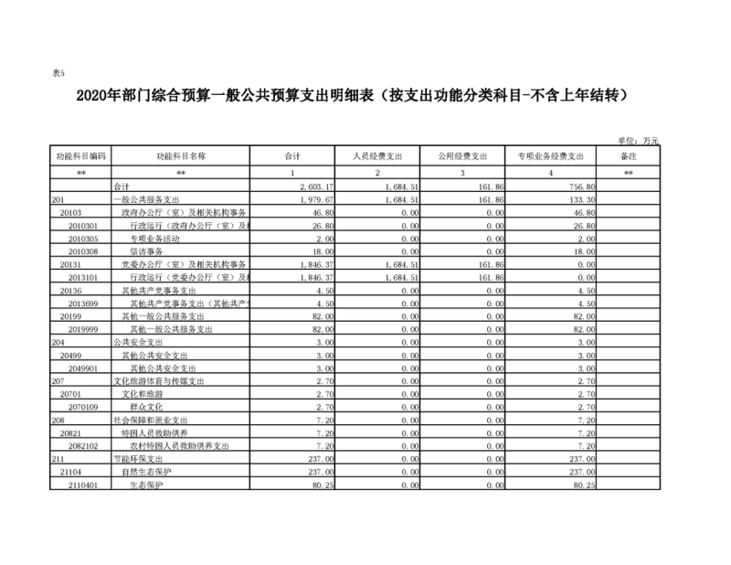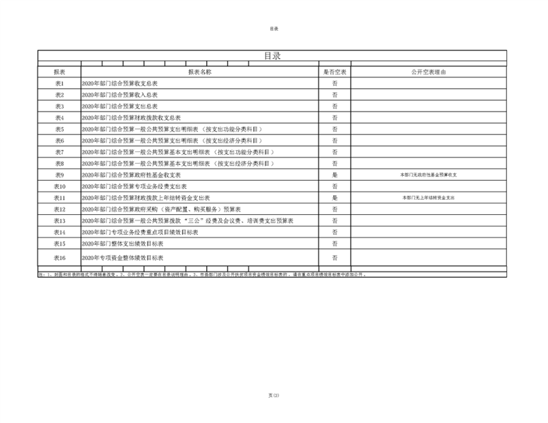 2020年部门预算公开目录