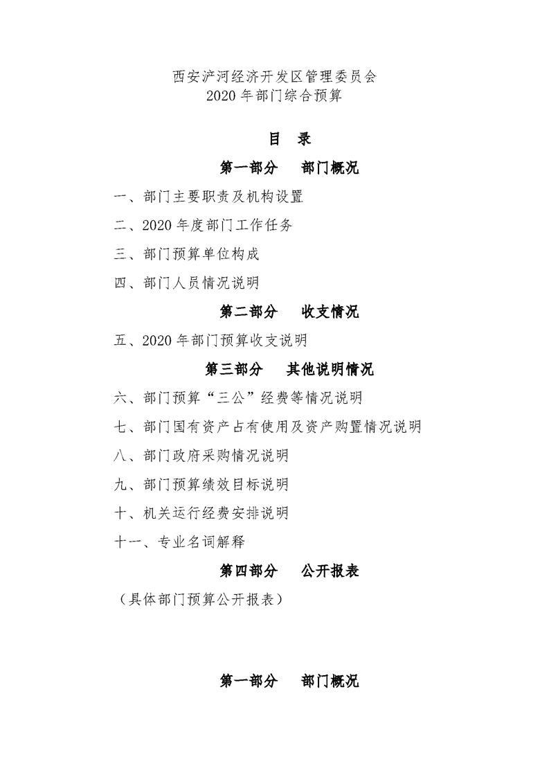 西安浐河开发区管理委员会2020年部门综合预算说明