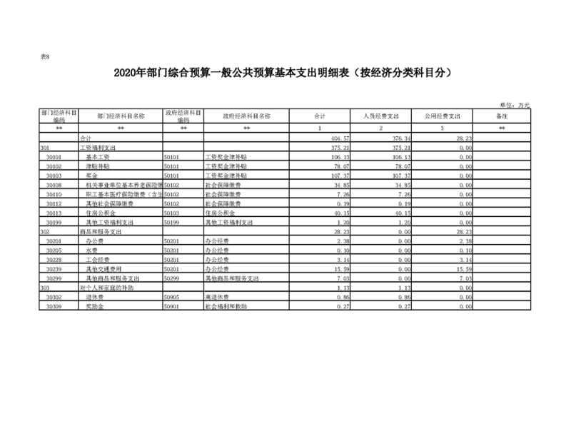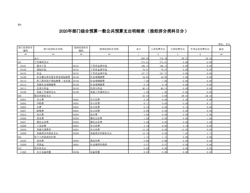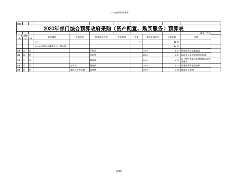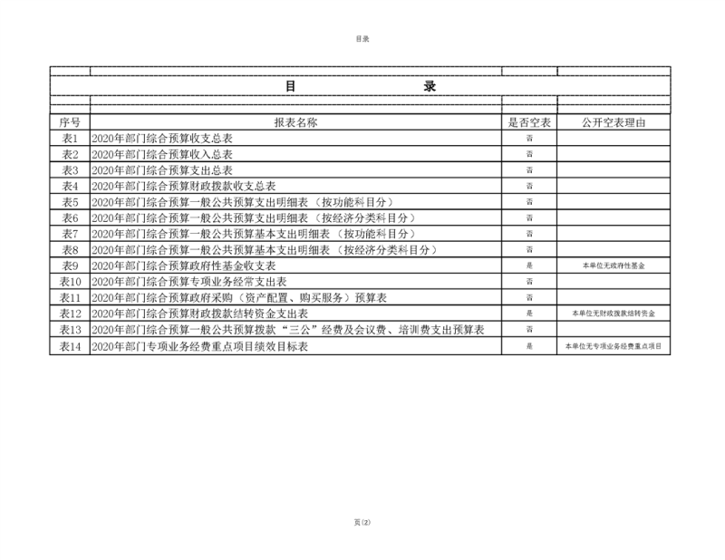 2020年部门预算公开目录