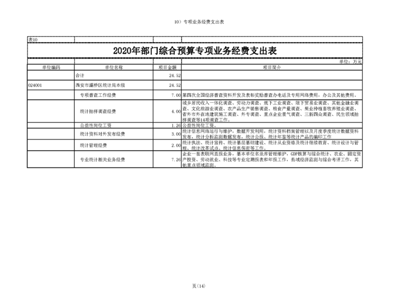 灞桥区统计局2020年部门综合预算说明