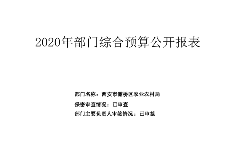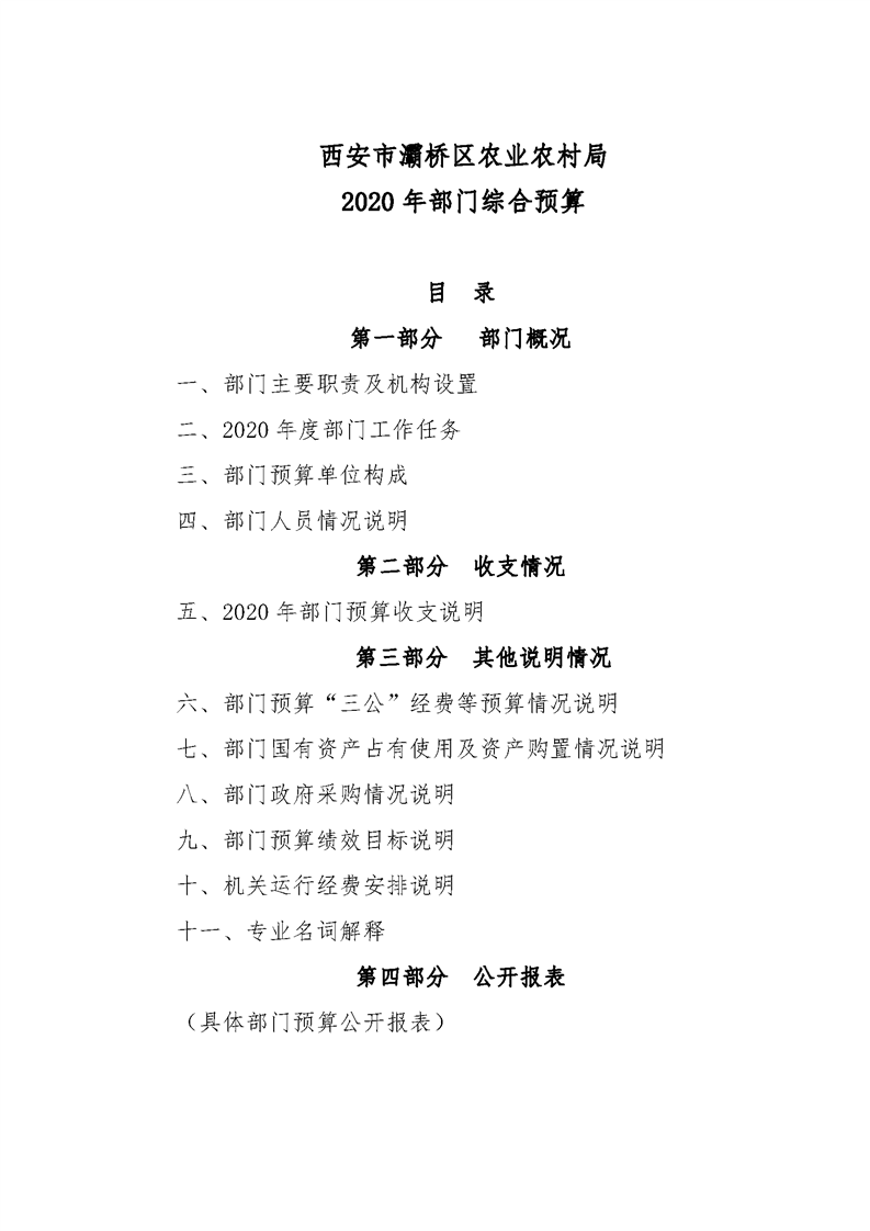 灞桥区农业农村局2020年部门综合预算说明