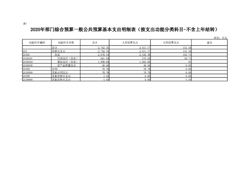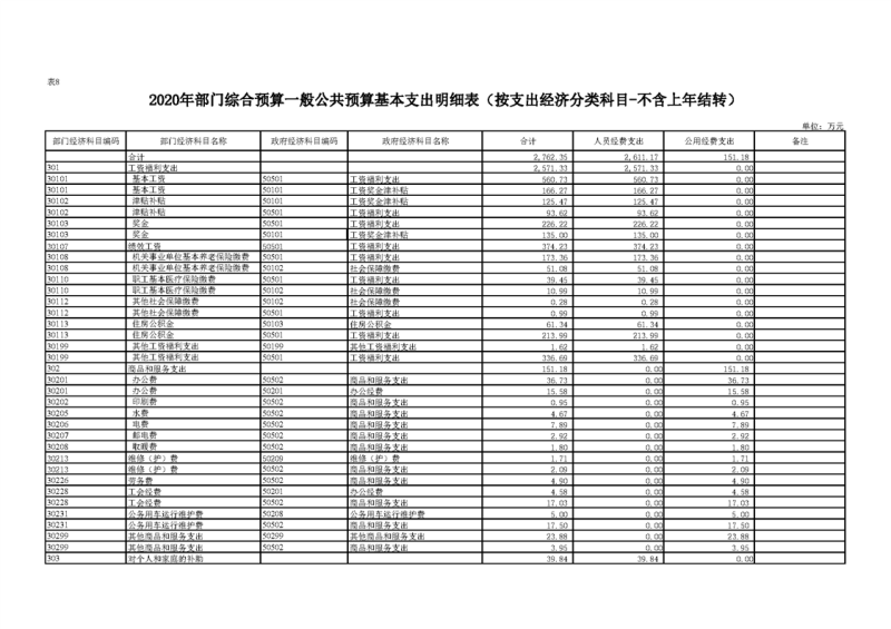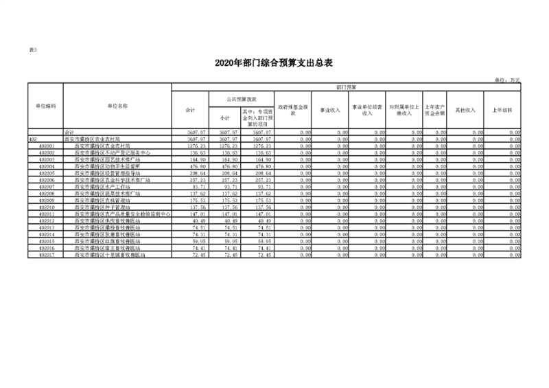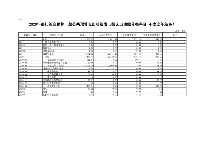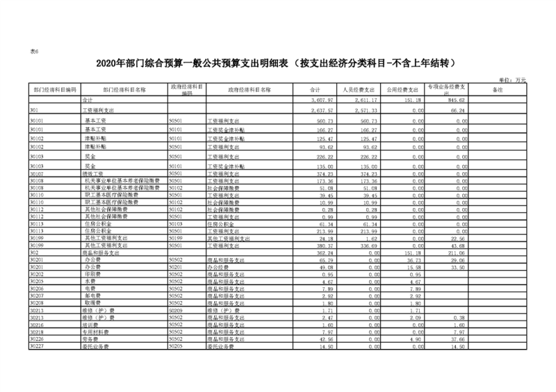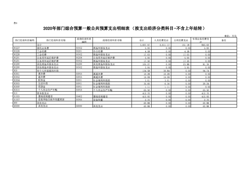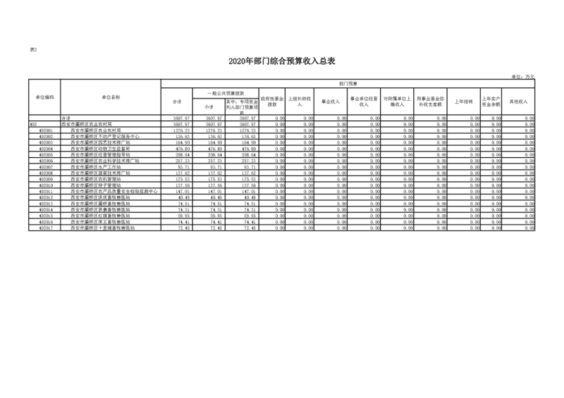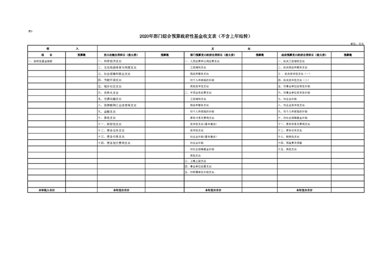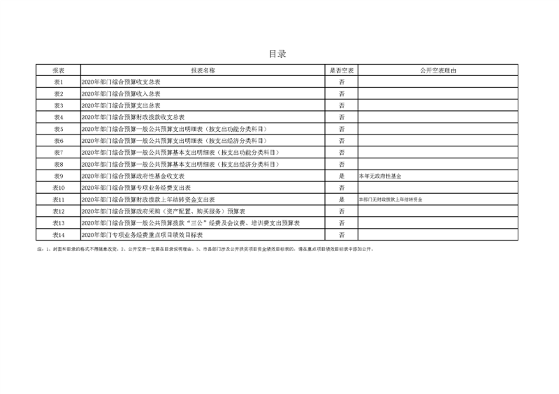 2020年部门预算公开目录