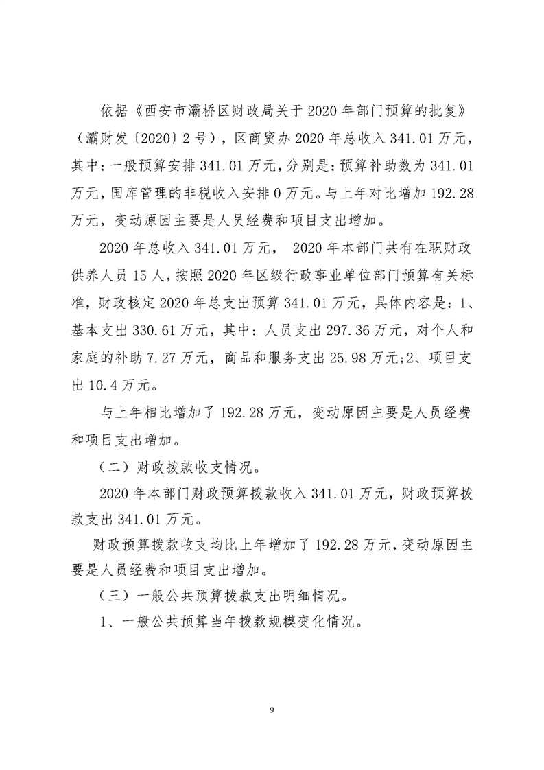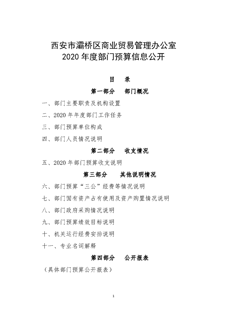 灞桥区商业贸易管理办公室2020年度部门综合预算说明