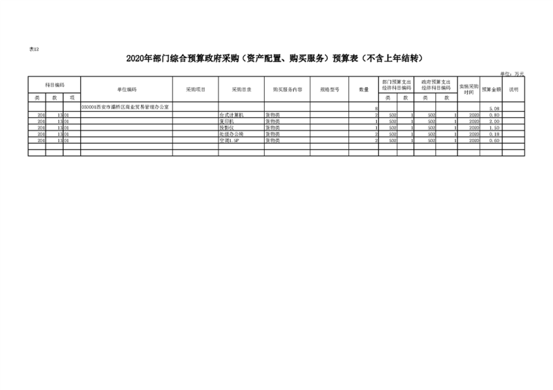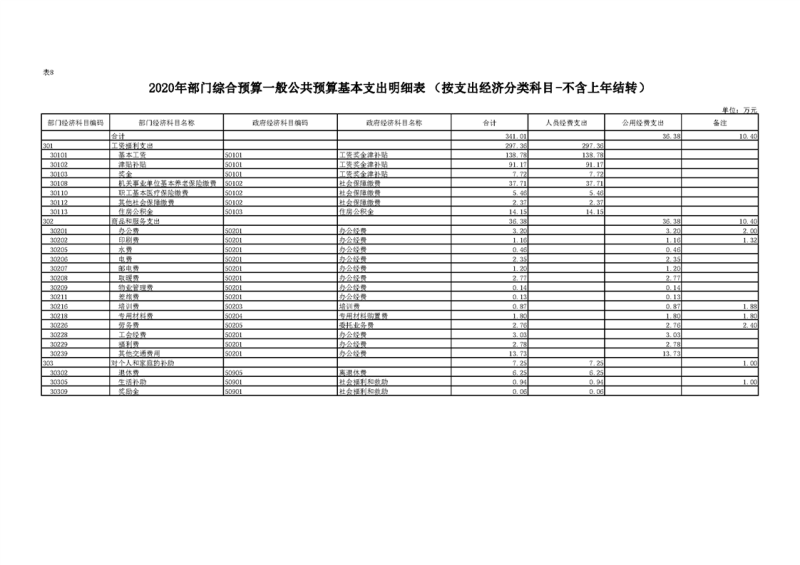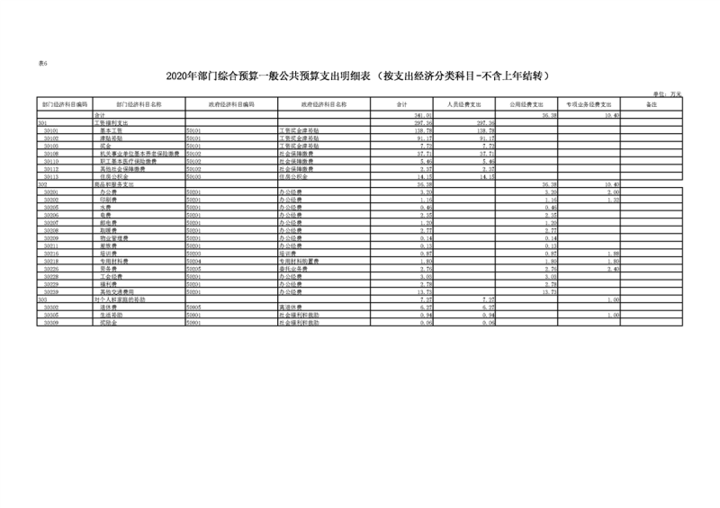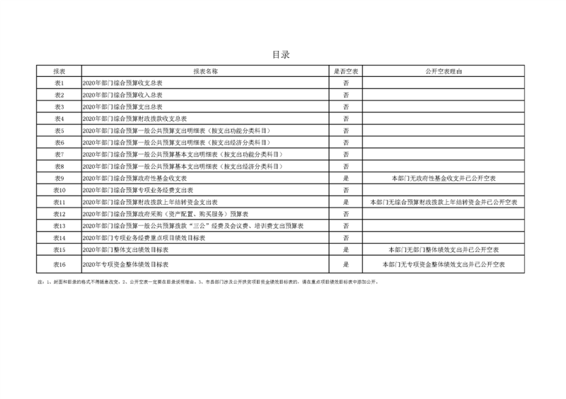 2020年部门预算公开目录
