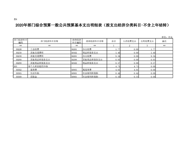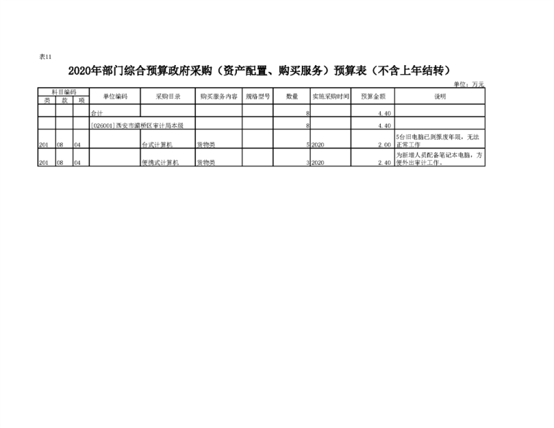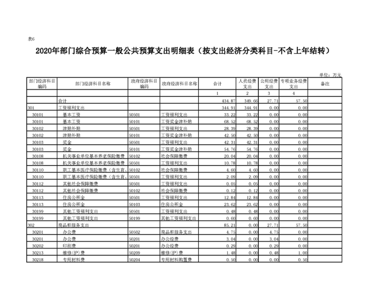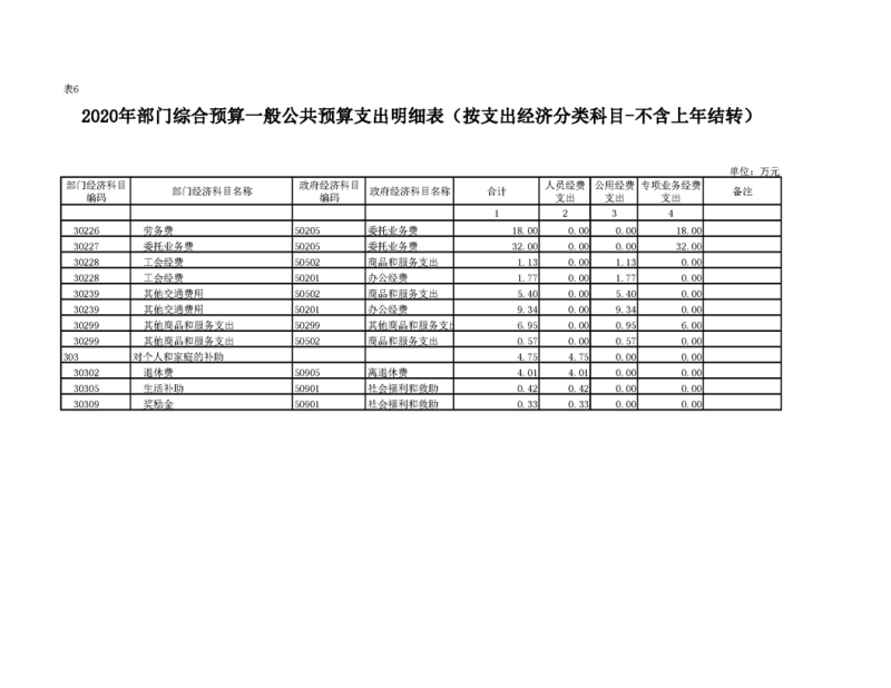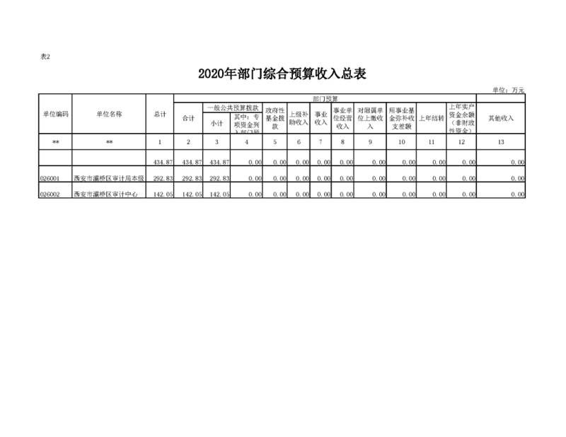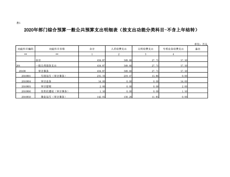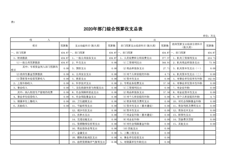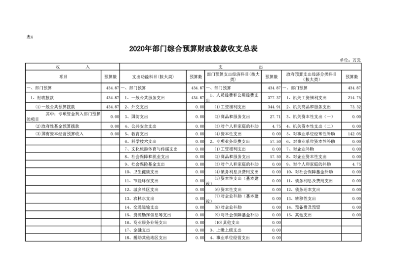 2020年部门预算公开目录