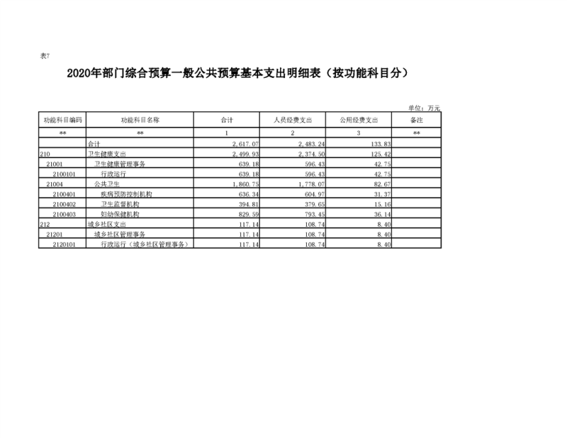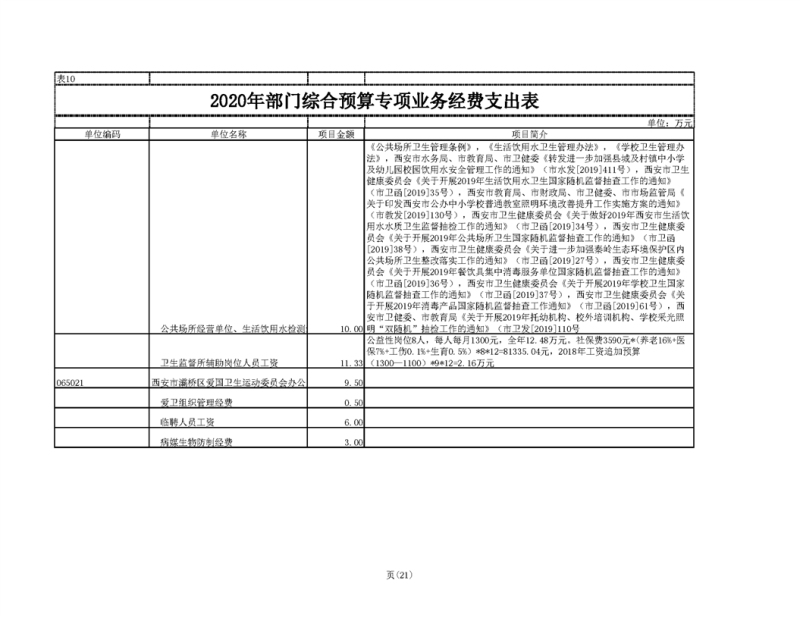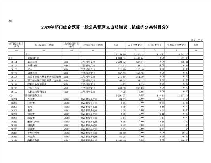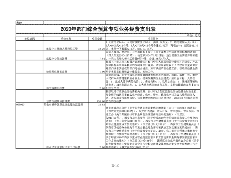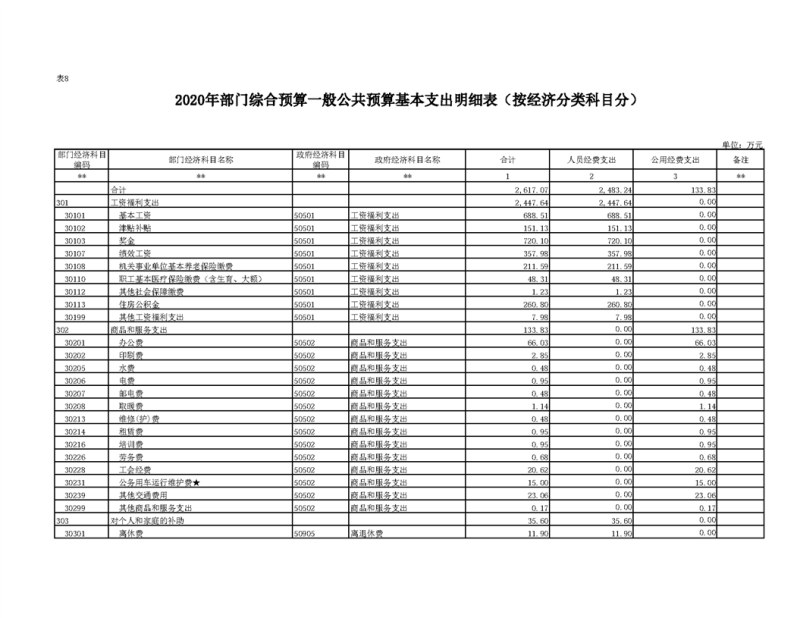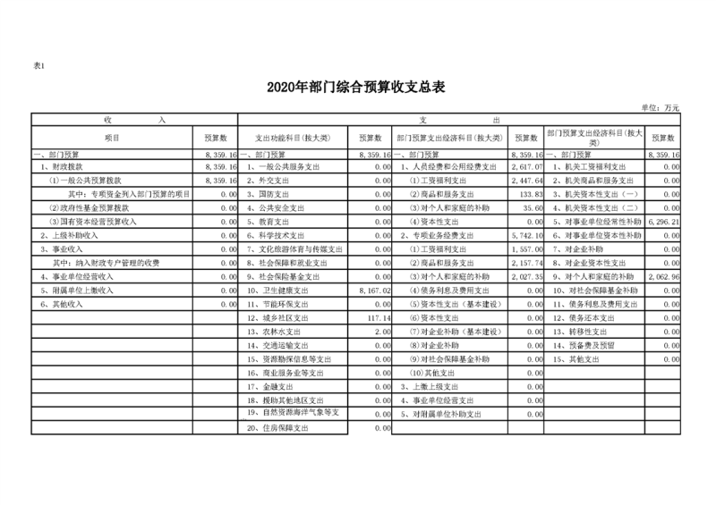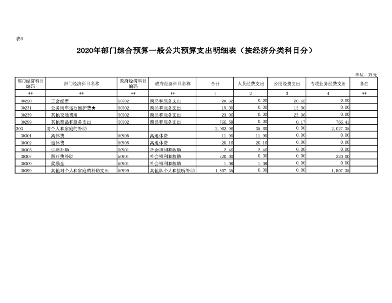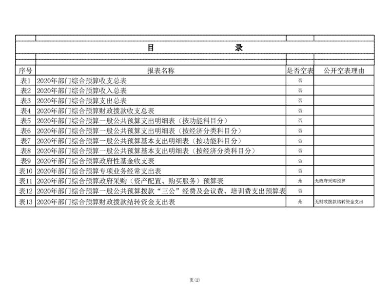 2020年部门预算公开目录