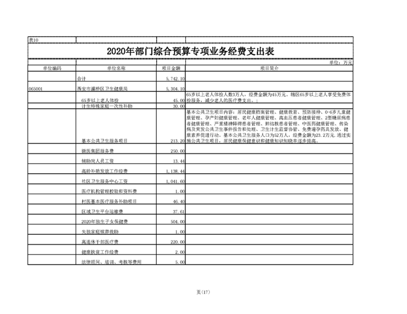 灞桥区卫生健康局2020年部门综合预算说明