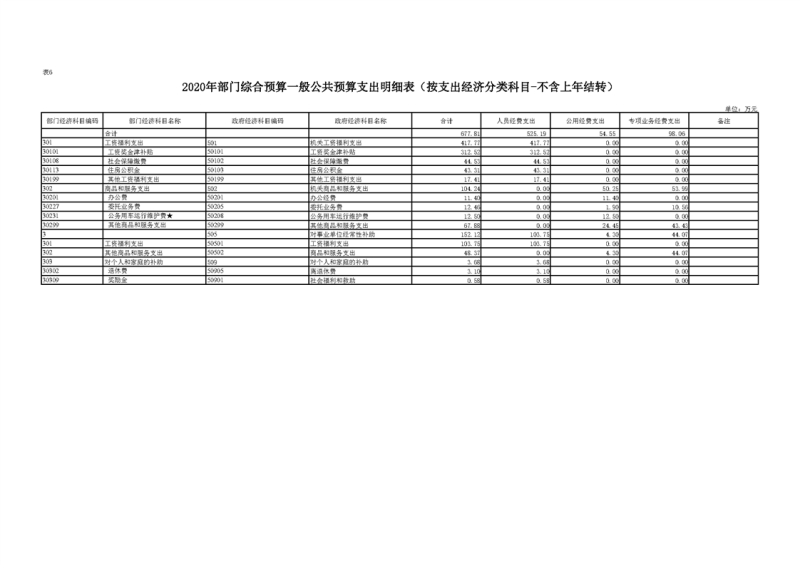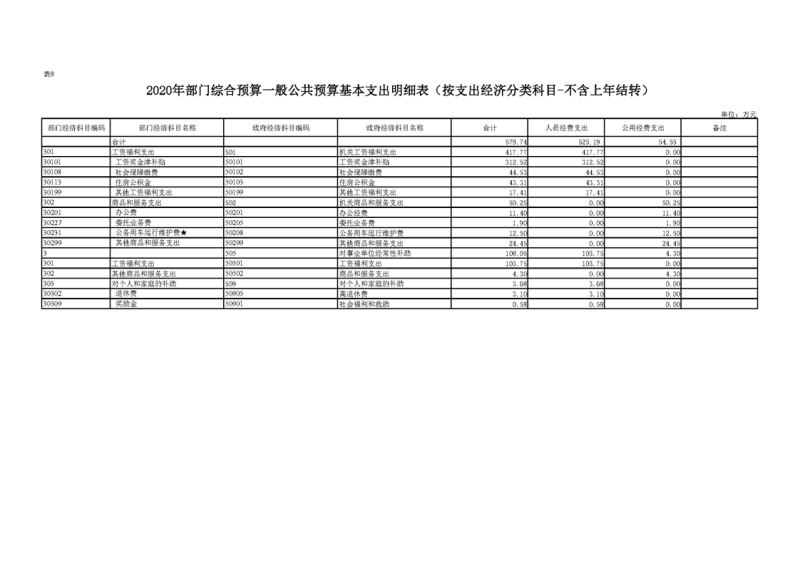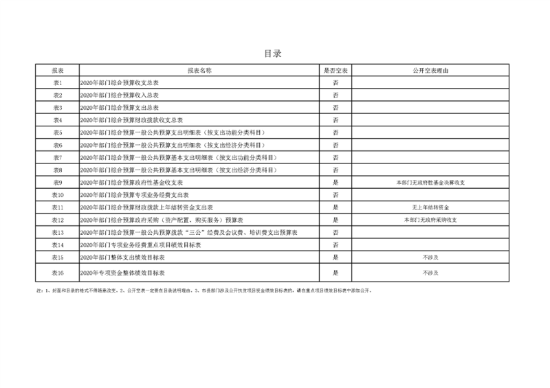 2020年部门预算公开目录