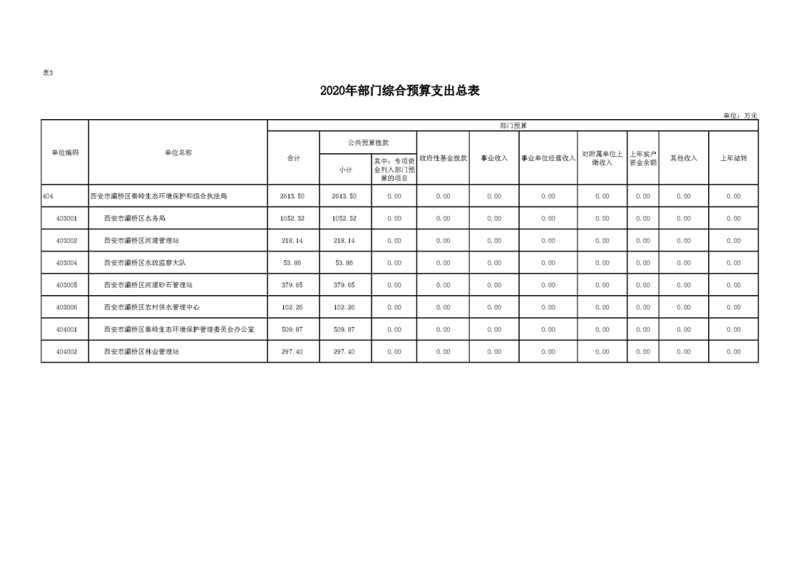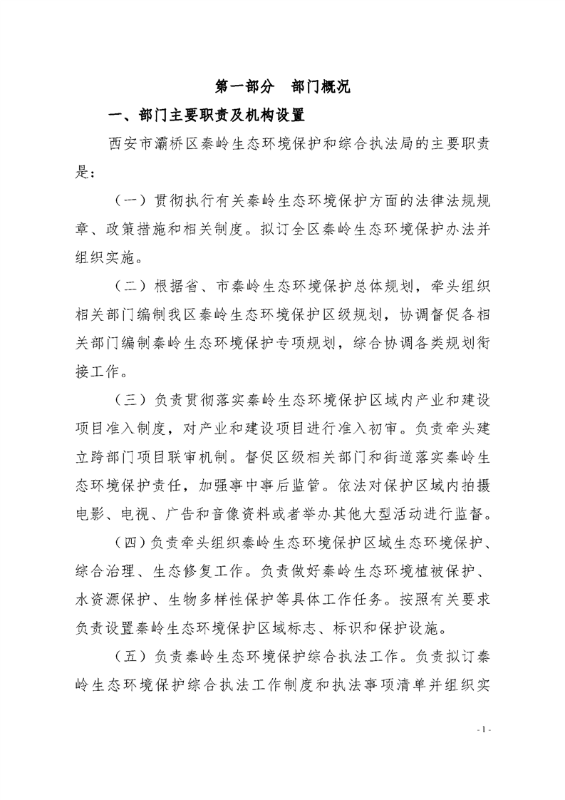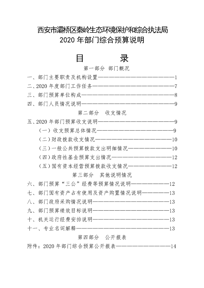 灞桥区秦岭生态环境保护和综合执法局2020年部门综合预算说明