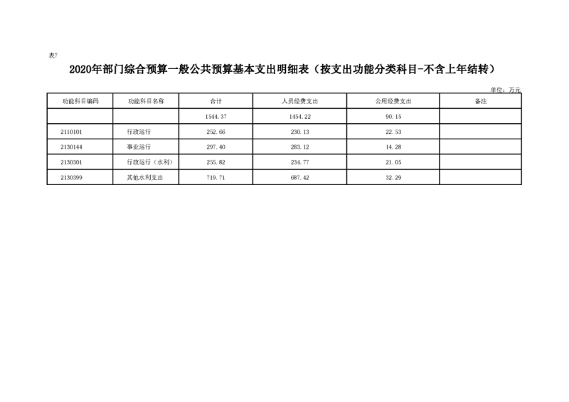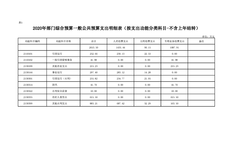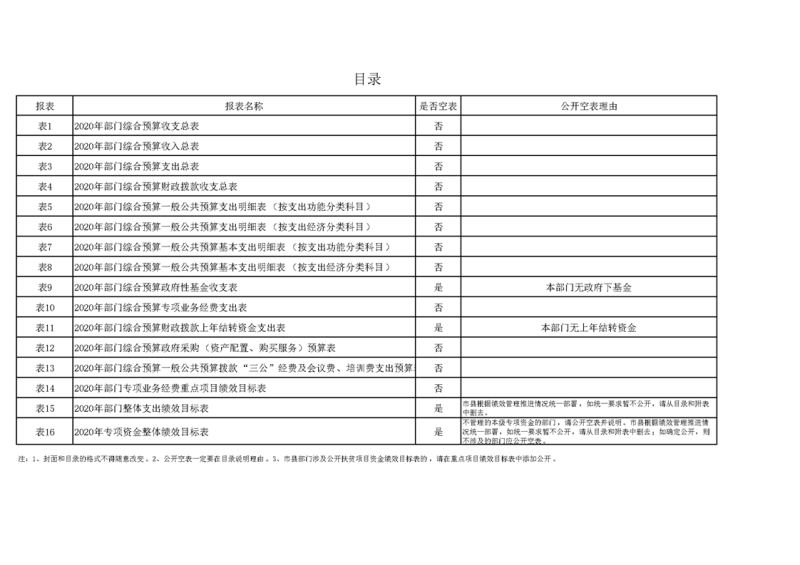 2020年部门预算公开目录