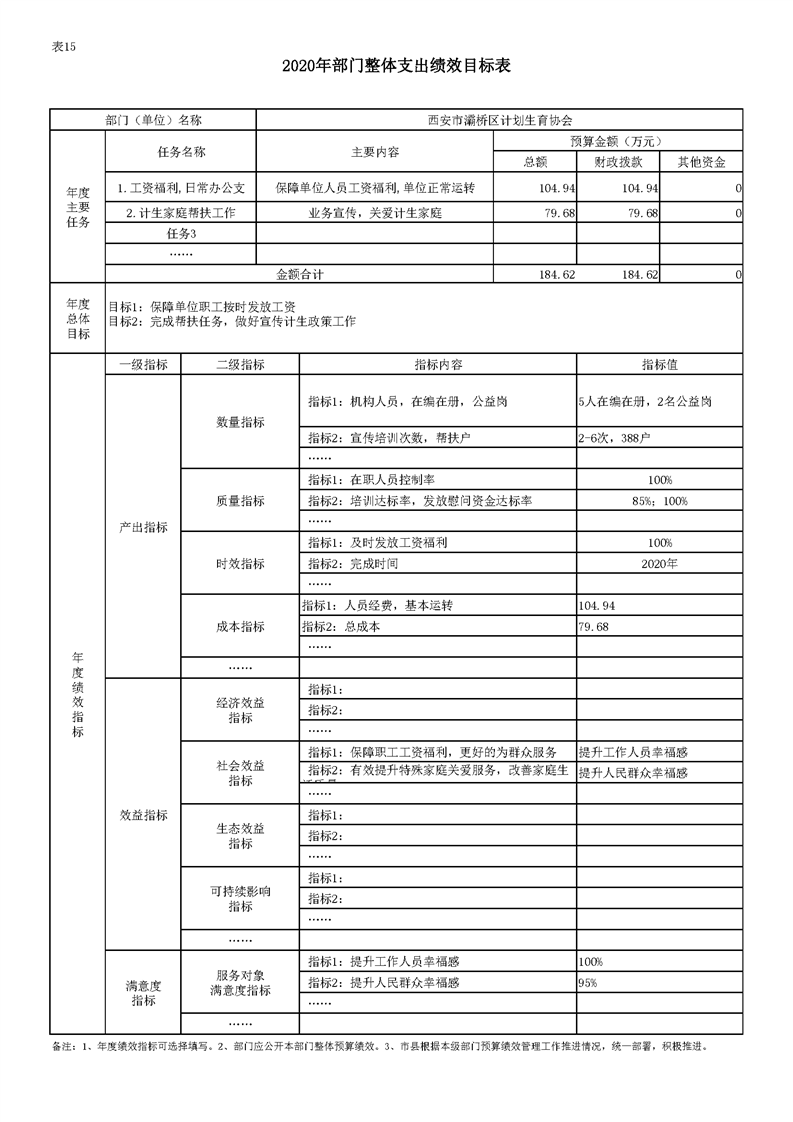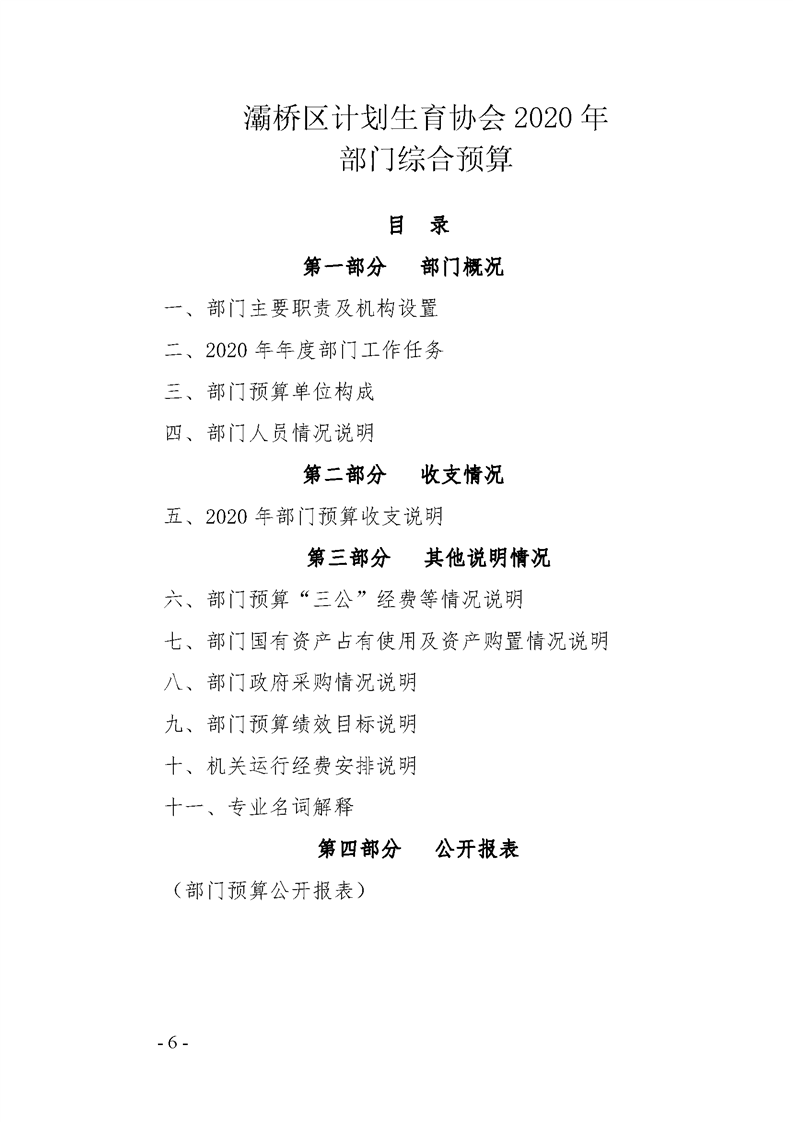 灞桥区计划生育协会2020年部门综合预算说明