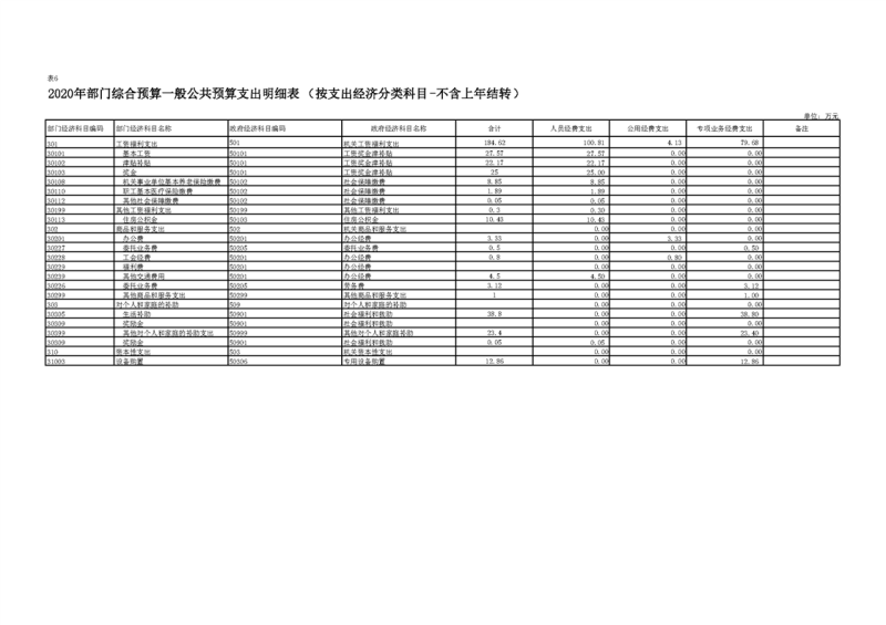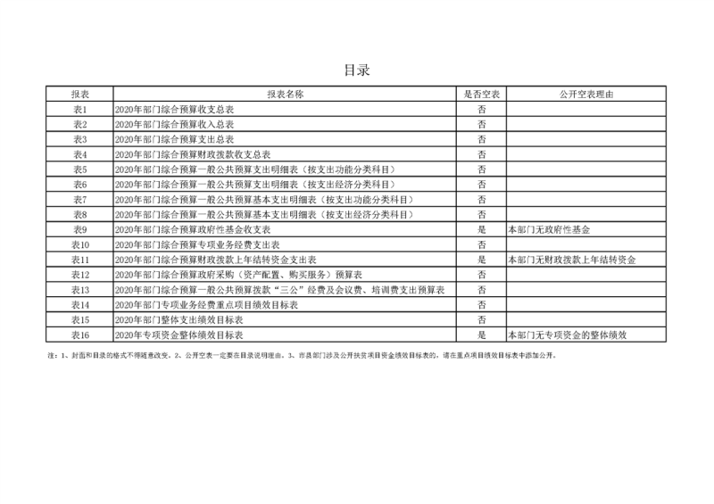 2020年部门预算公开目录