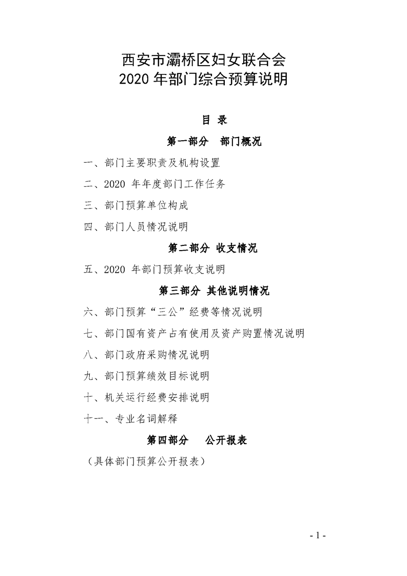 灞桥区妇女联合会2020年部门综合预算说明