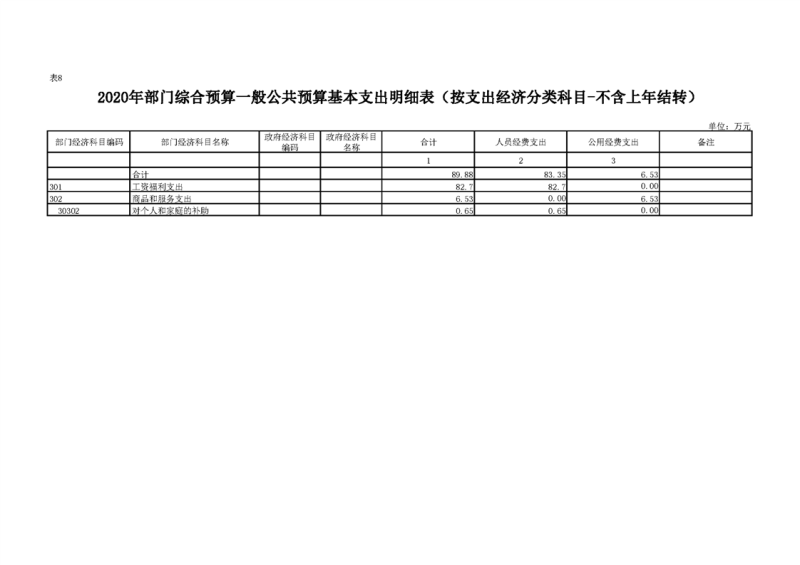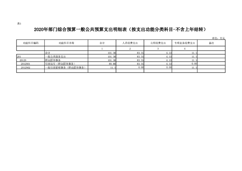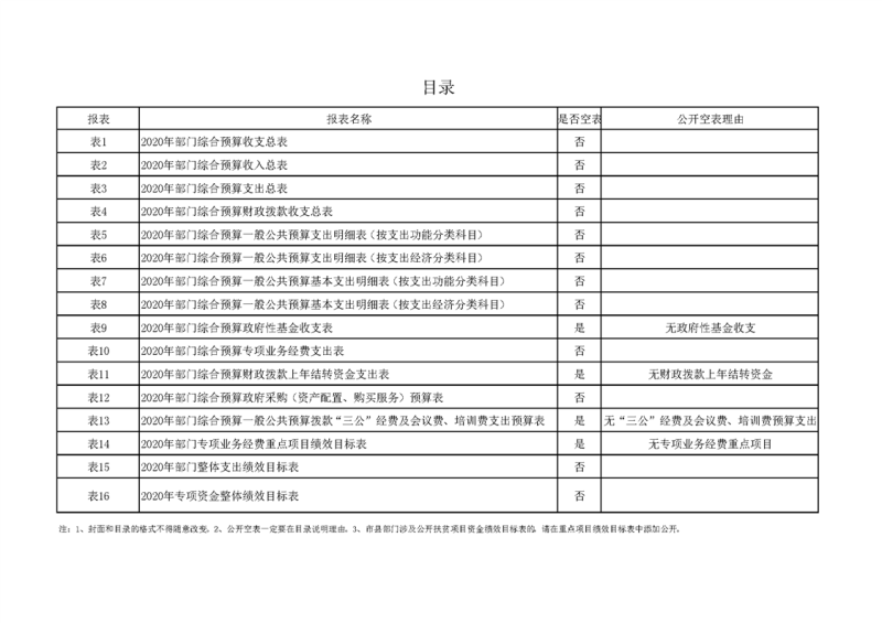 2020年部门预算公开目录