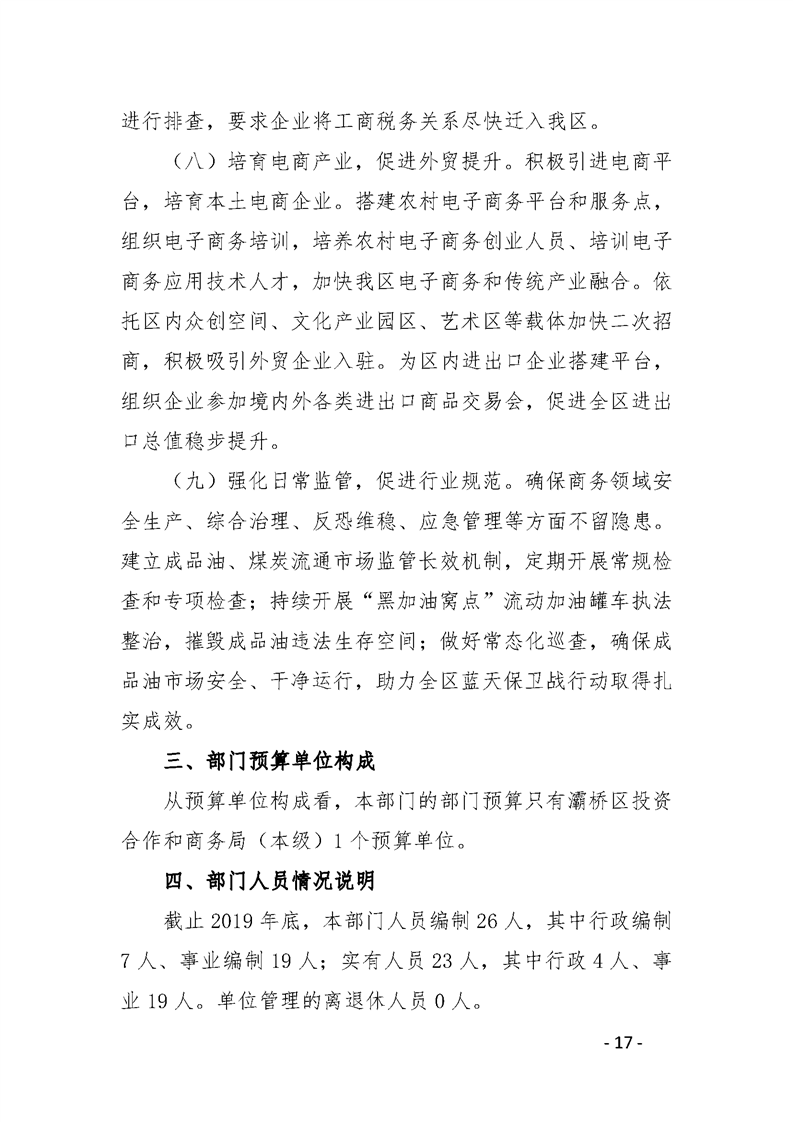 灞桥区投资合作和商务局2020年部门综合预算说明