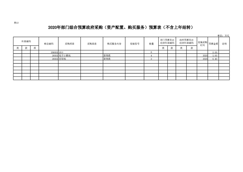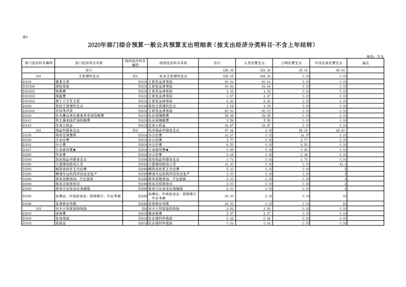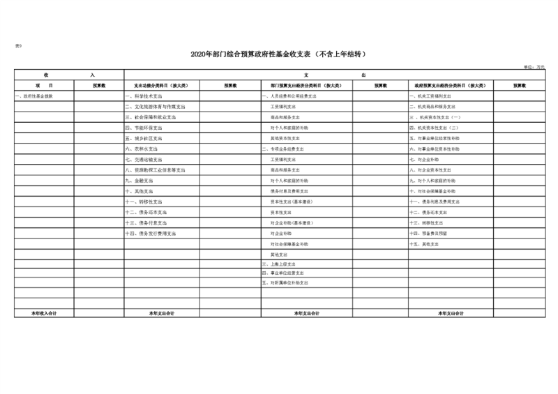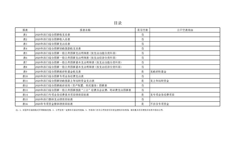 2020年部门预算公开目录