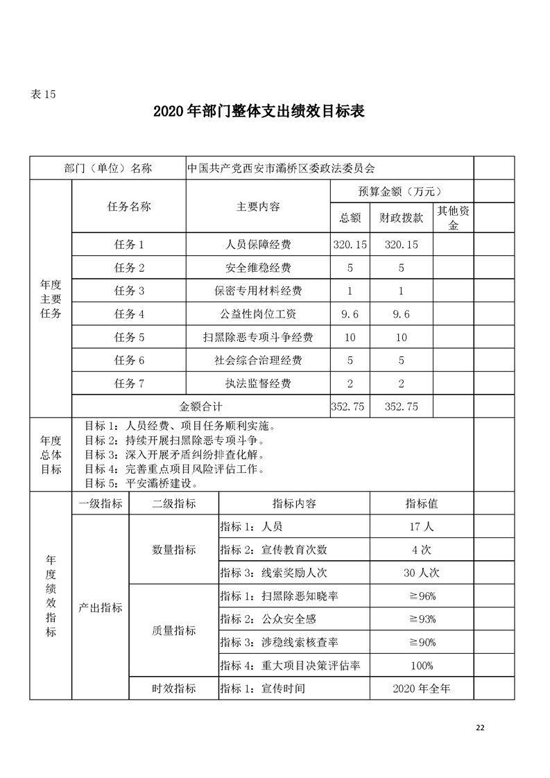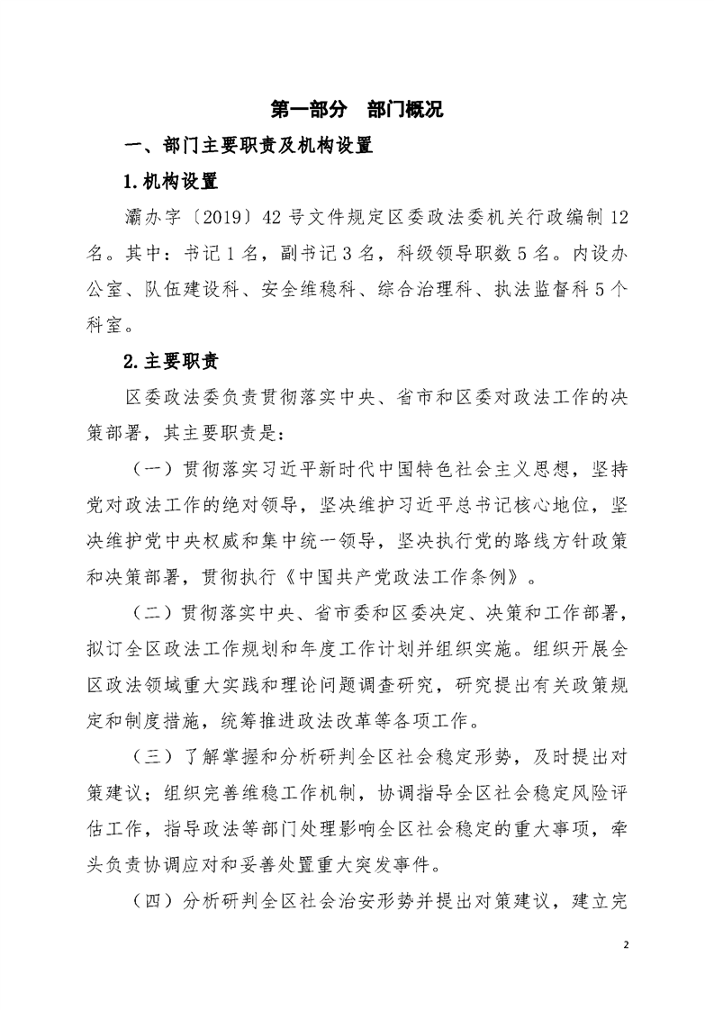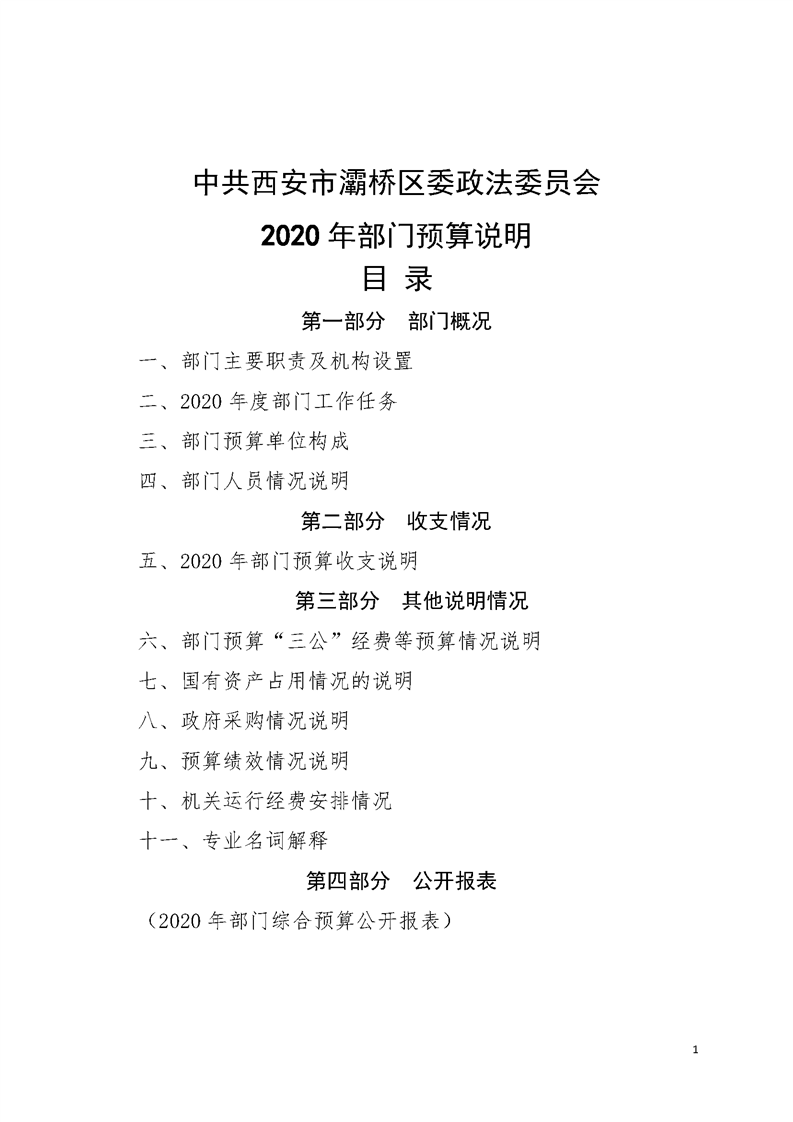 灞桥区委政法委员会2020年部门综合预算说明