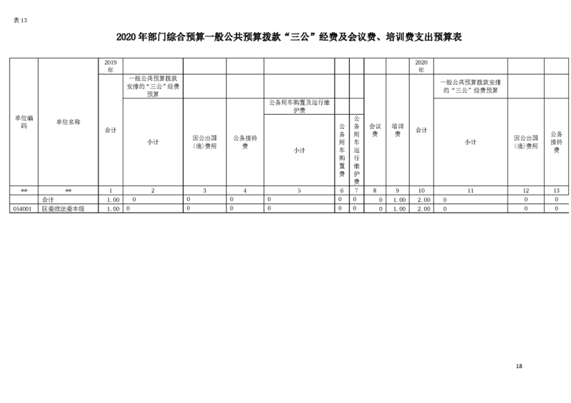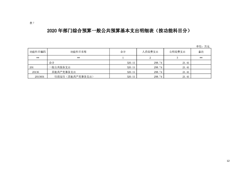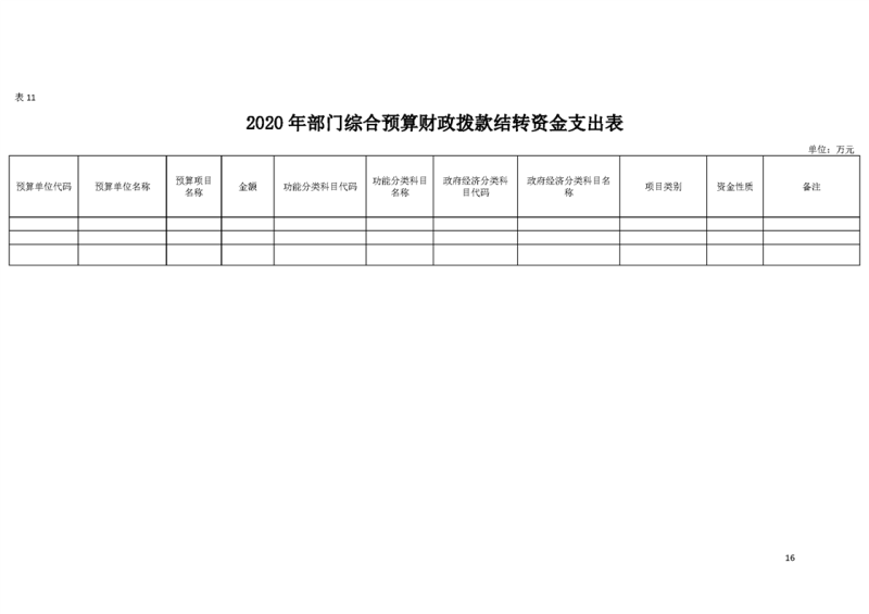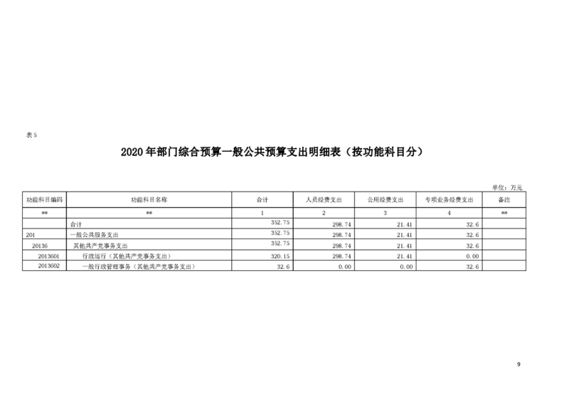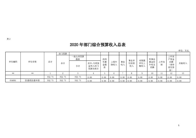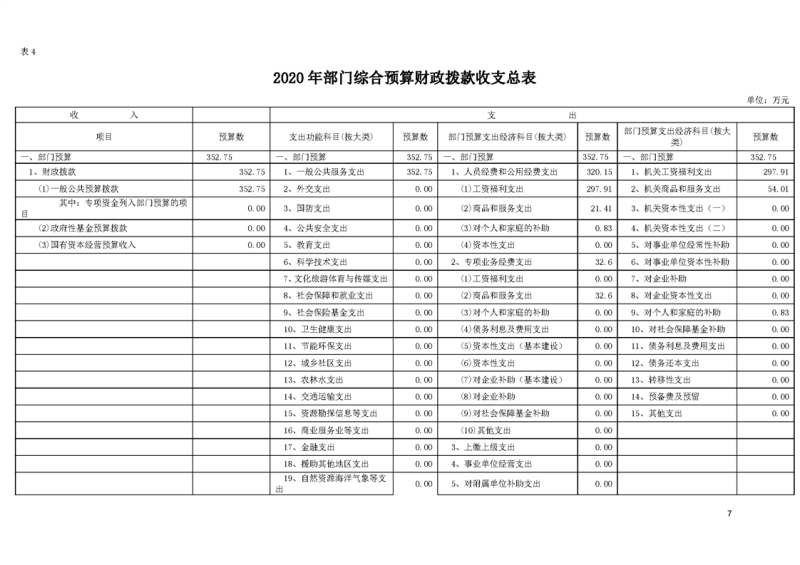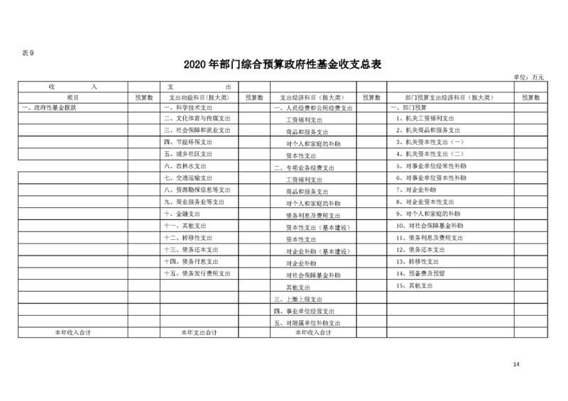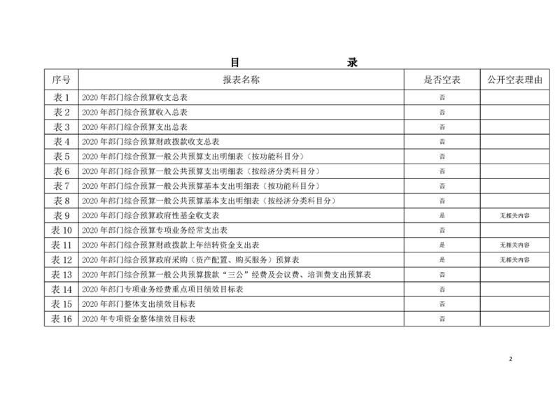 2020年部门预算公开目录