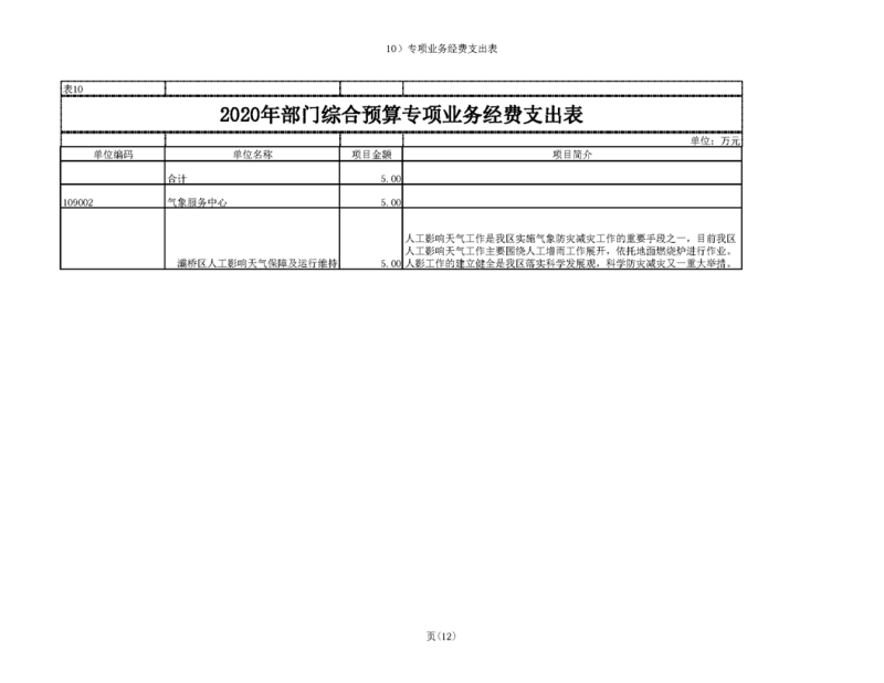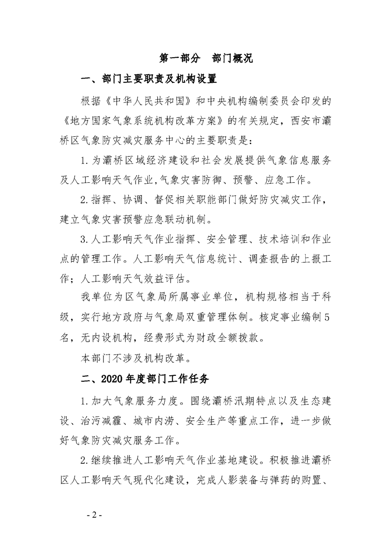 灞桥区气象防灾减灾服务中心2020年部门综合预算说明