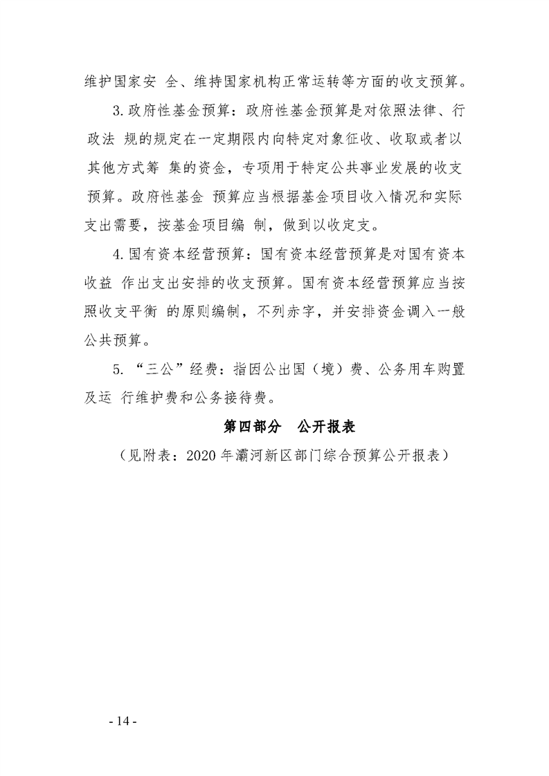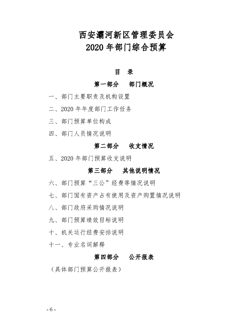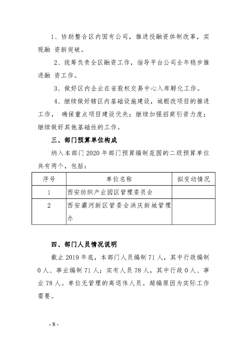 灞河新区管理委员会2020年部门综合预算说明